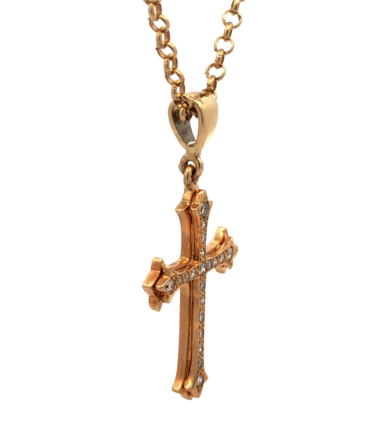 - Designer KGJ 14K Yellow Gold Round Diamond Cross Pendant Chain Necklace