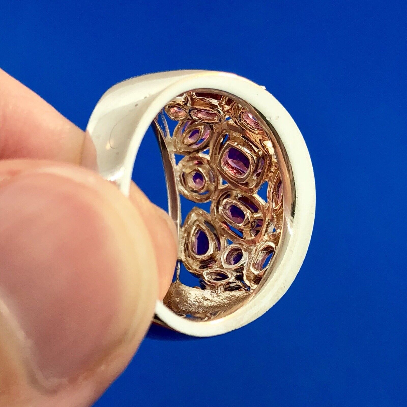 Designer LJ Sterling Silver Pink Tourmaline Cluster Statement Cigar Band Ring