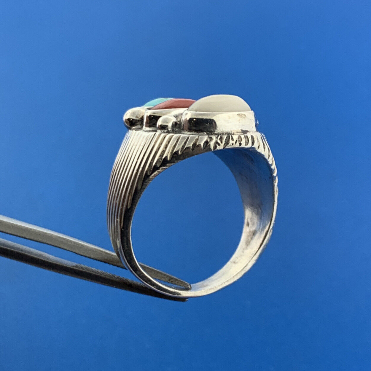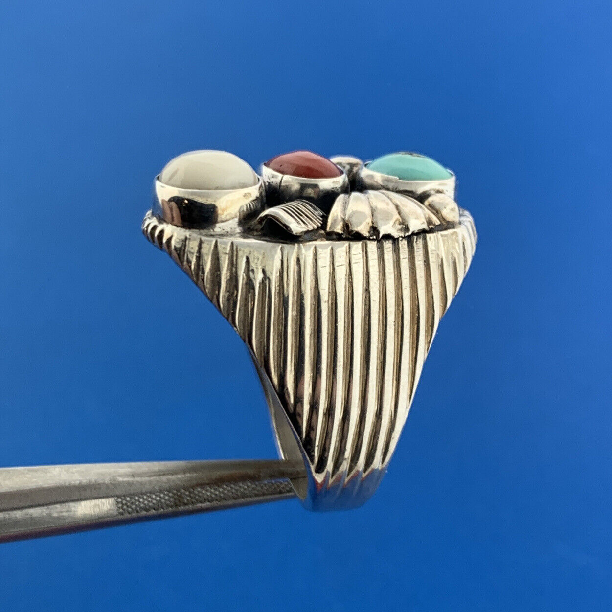 Designer Many Claw Sterling Silver 925 Turquoise Coral Agate Dome Ring Size 11
