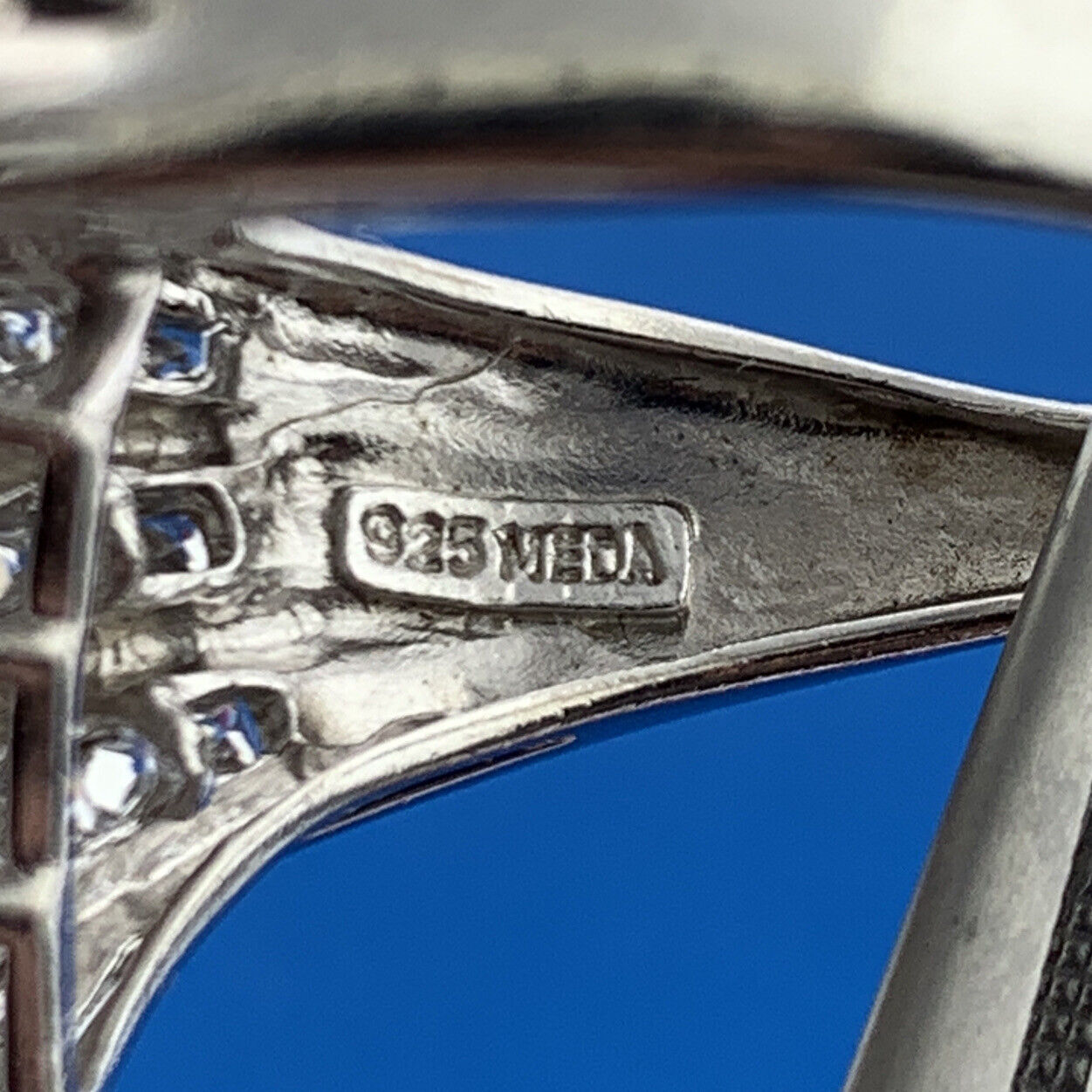 Designer MEDA Sterling Silver 925 Sparkling CZ Statement Bypass Ring Size 8