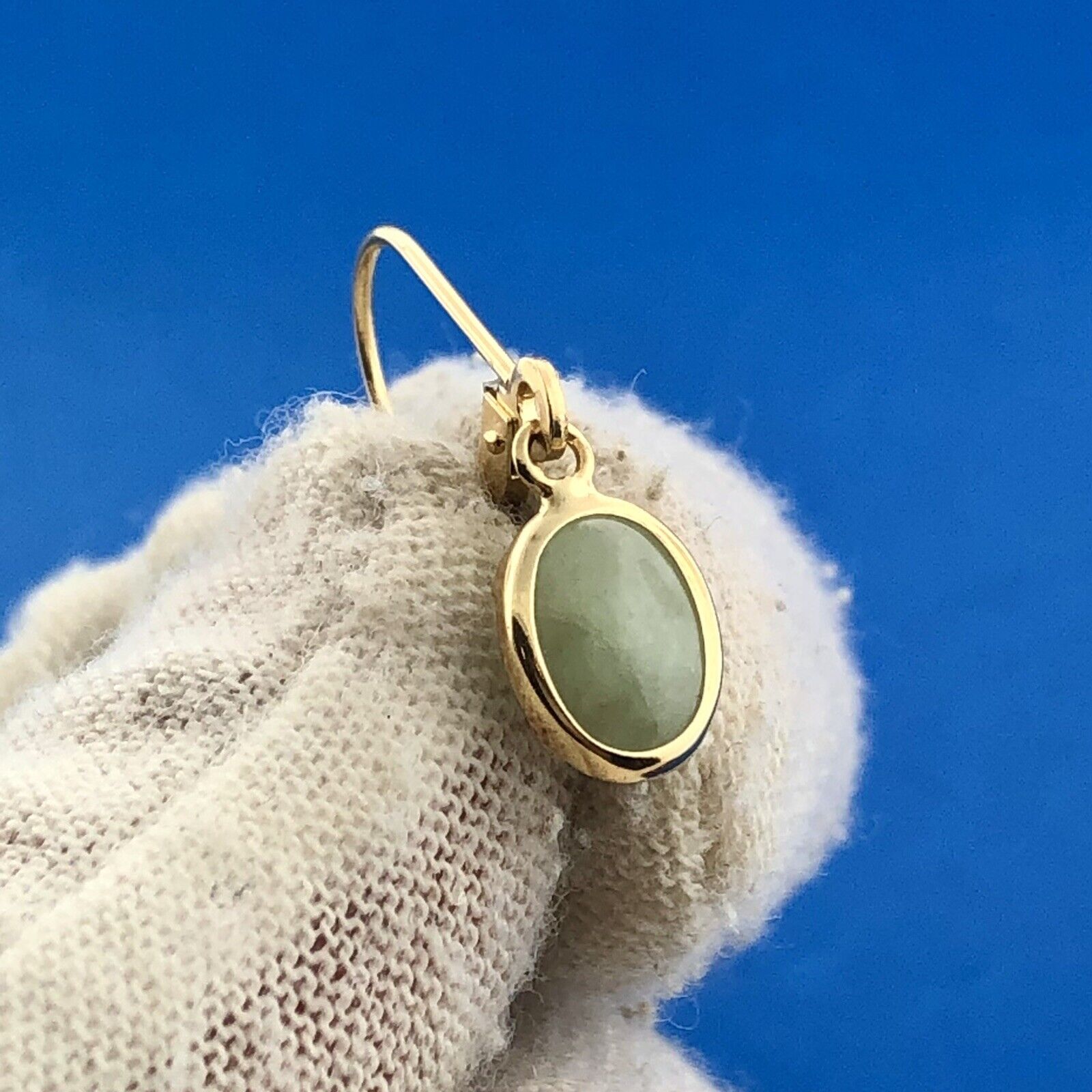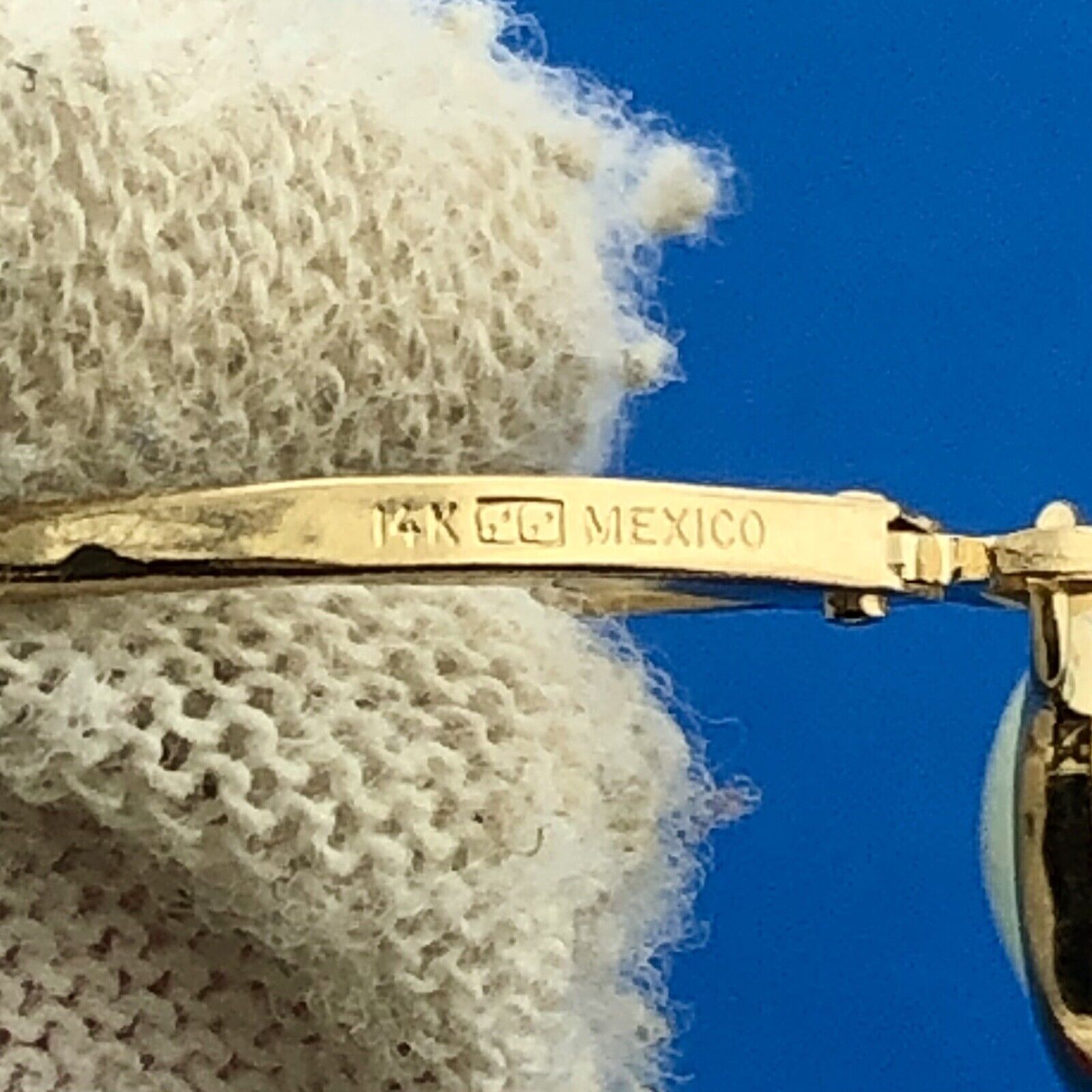- Designer Mexico 14K Yellow Gold Oval Green Chalcedony Lever Hook Dangle Earrings