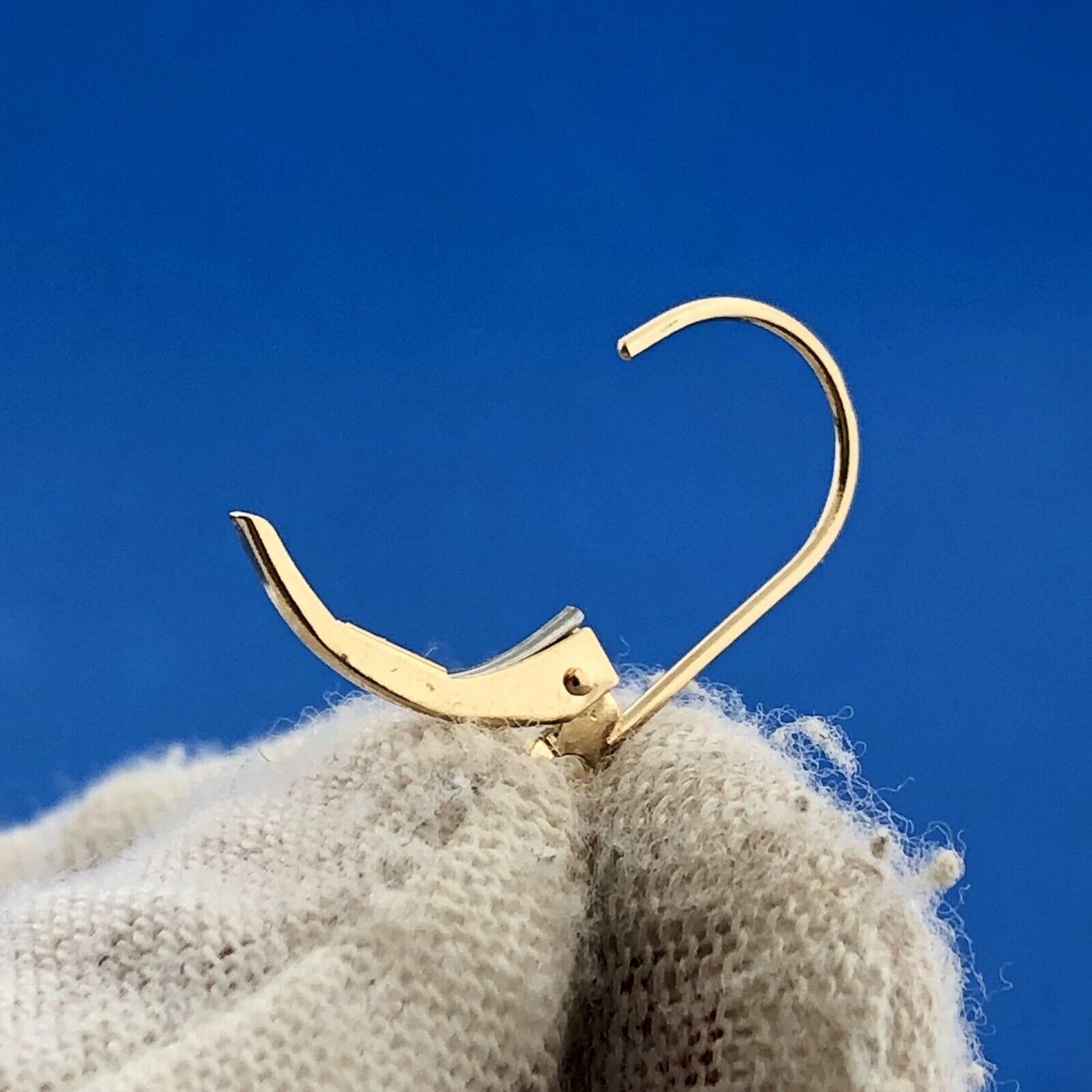Designer Mexico 14K Yellow Gold Oval Green Chalcedony Lever Hook Dangle Earrings