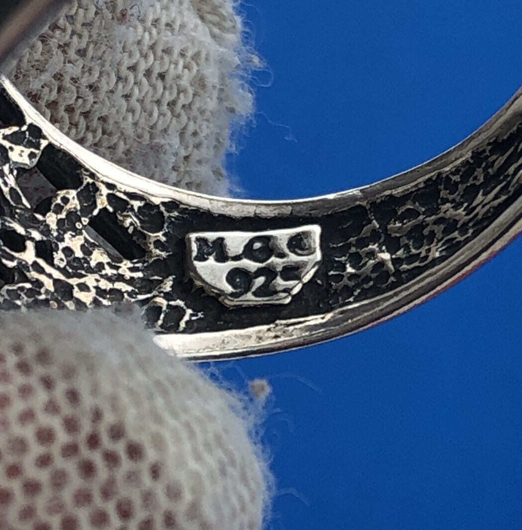 - Designer MG Sterling Silver 925 Oval Coral Open Scroll Statement Cocktail Ring