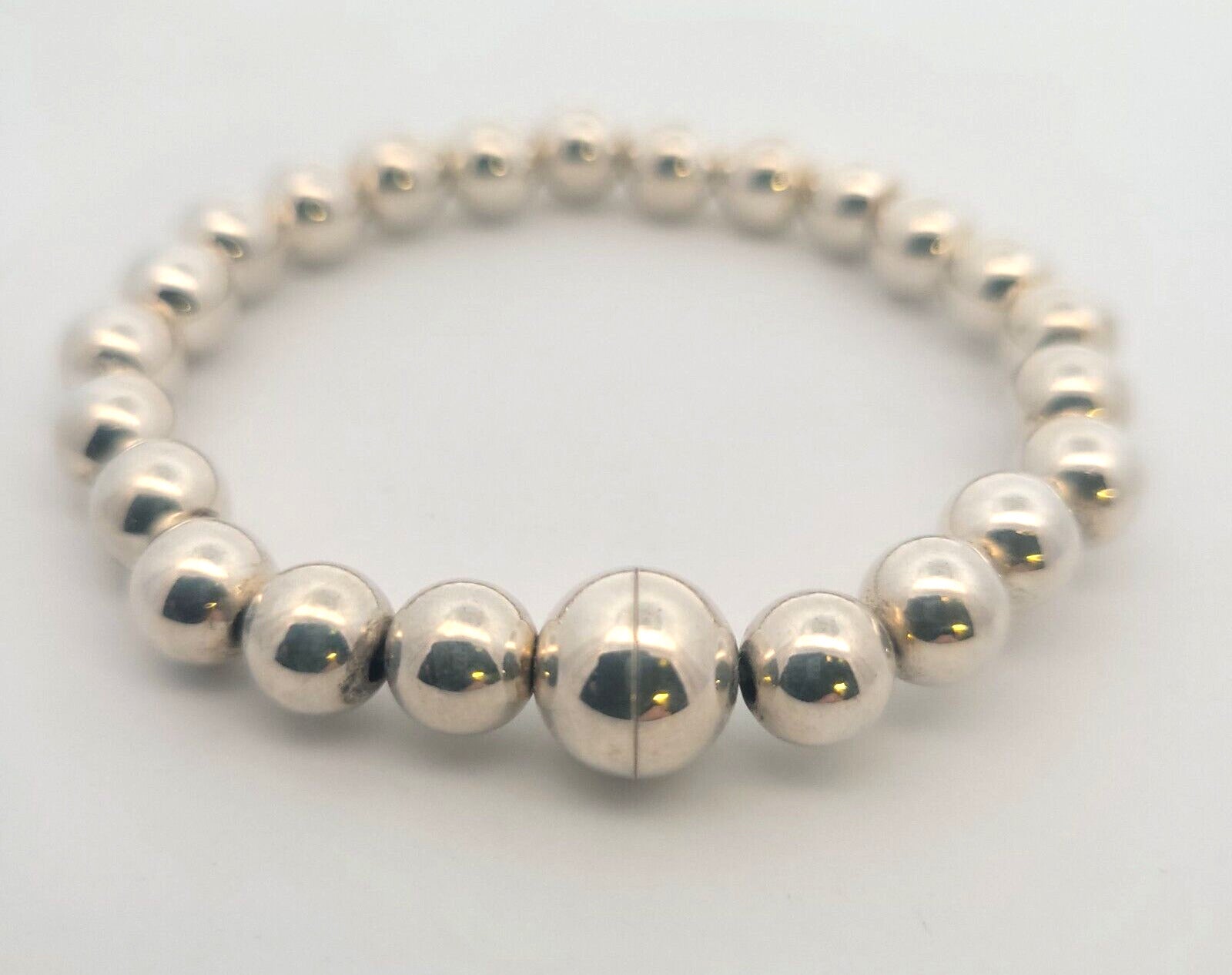Designer Milor Italy 925 Sterling Silver Ball Bead Link Magnetic Clasp Bracelet
