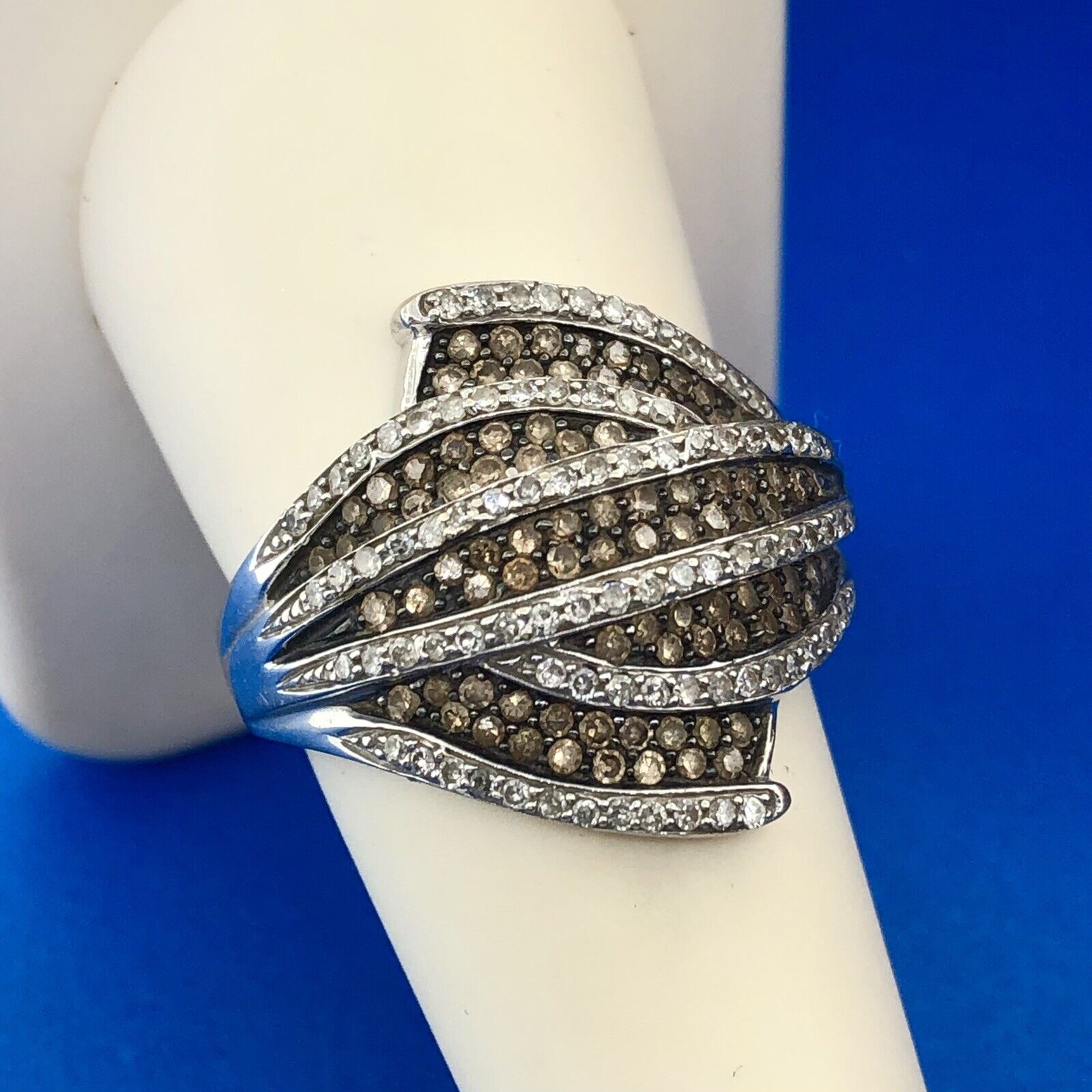 Designer MJ 14K White Gold White Champagne Diamond Modernist Dome Ring