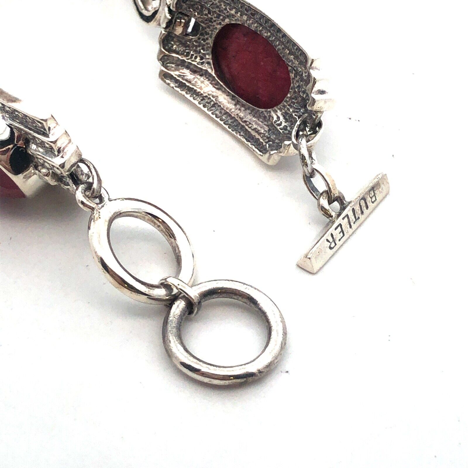 Designer Nicky Butler 925 Sterling Silver Ruby Corundum Statement Panel Bracelet