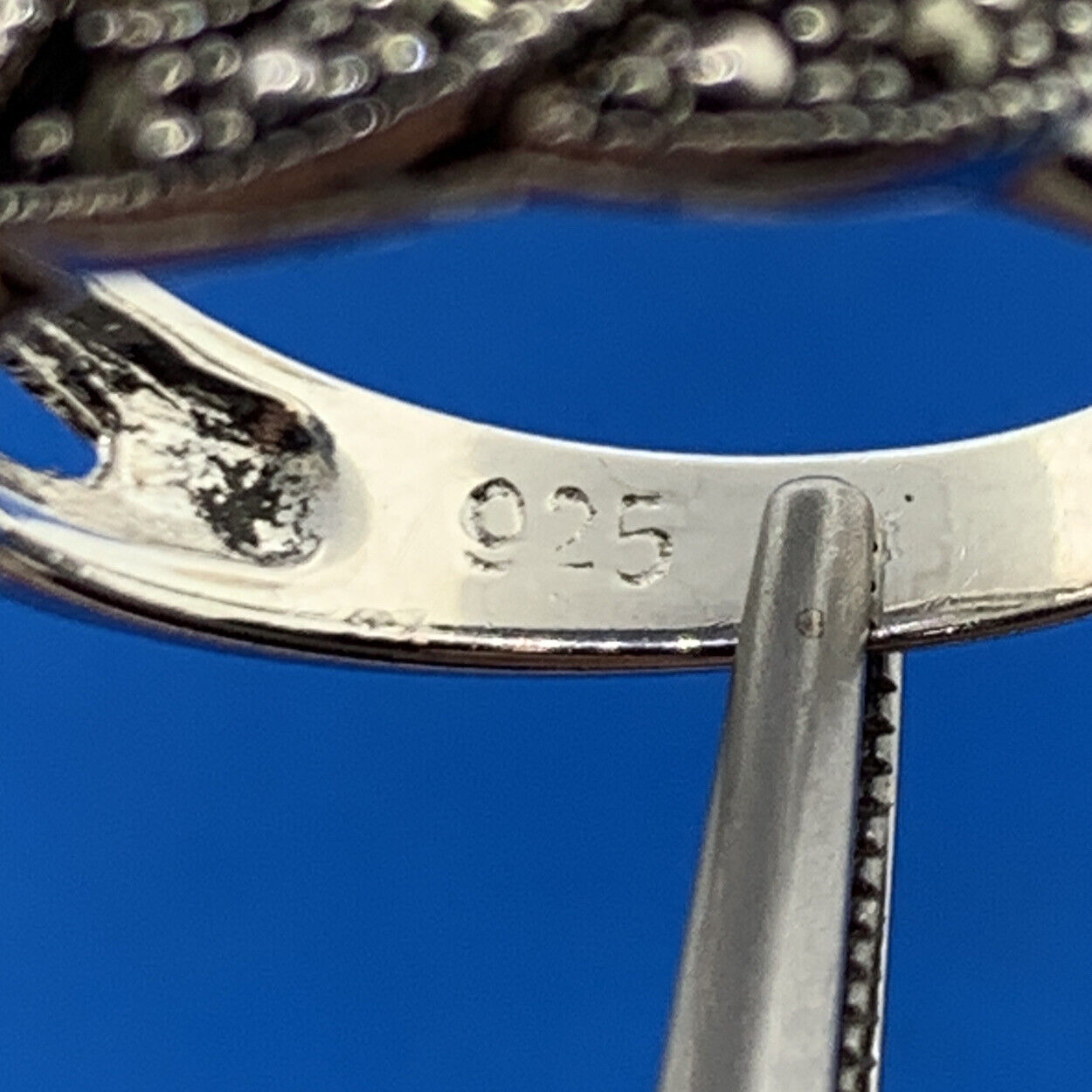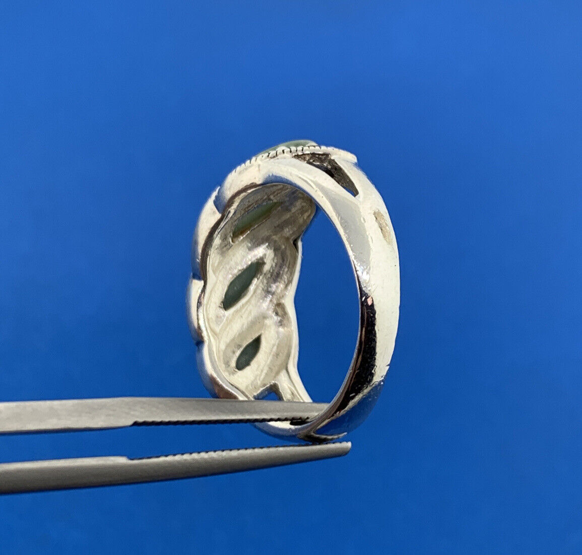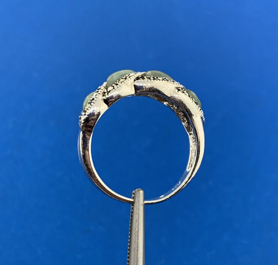 - Designer NV 925 Sterling Silver Jade Marcasite Accented Cocktail Ring
