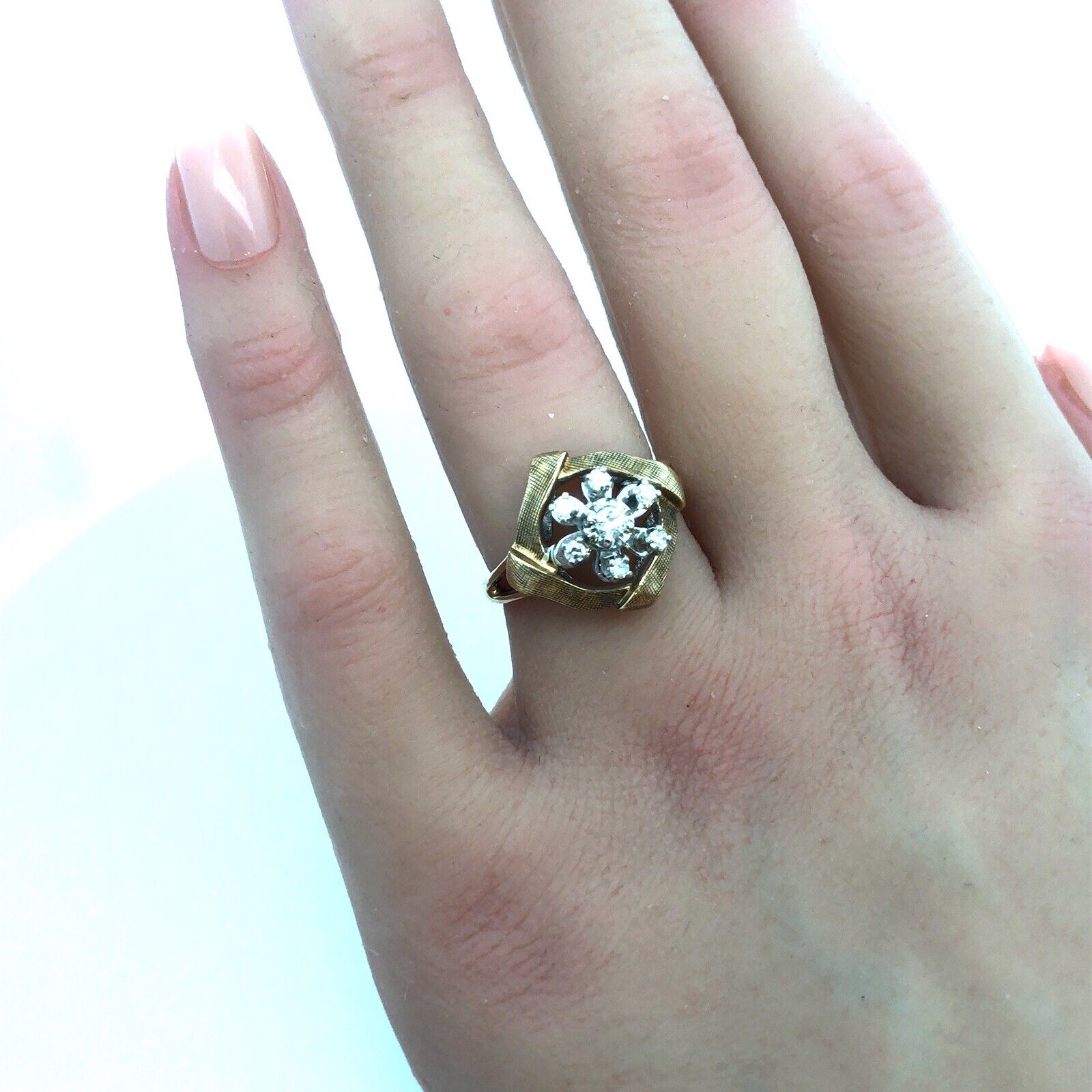 - Designer OFA 14k Yellow Gold Round Cut Diamond Cluster Openwork Ring Size 6.25