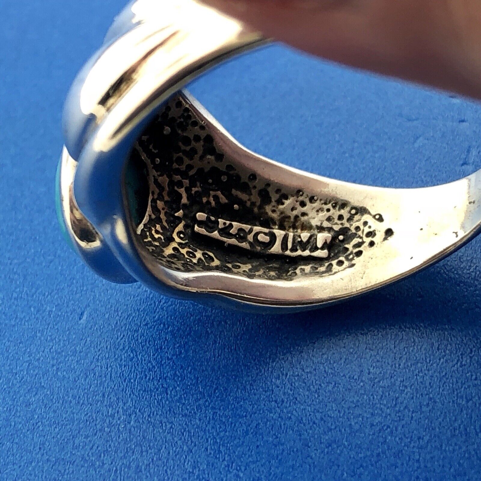 - Designer OIM Sterling Silver 925 Oval Turquoise Modernist Ribbed Design Ring