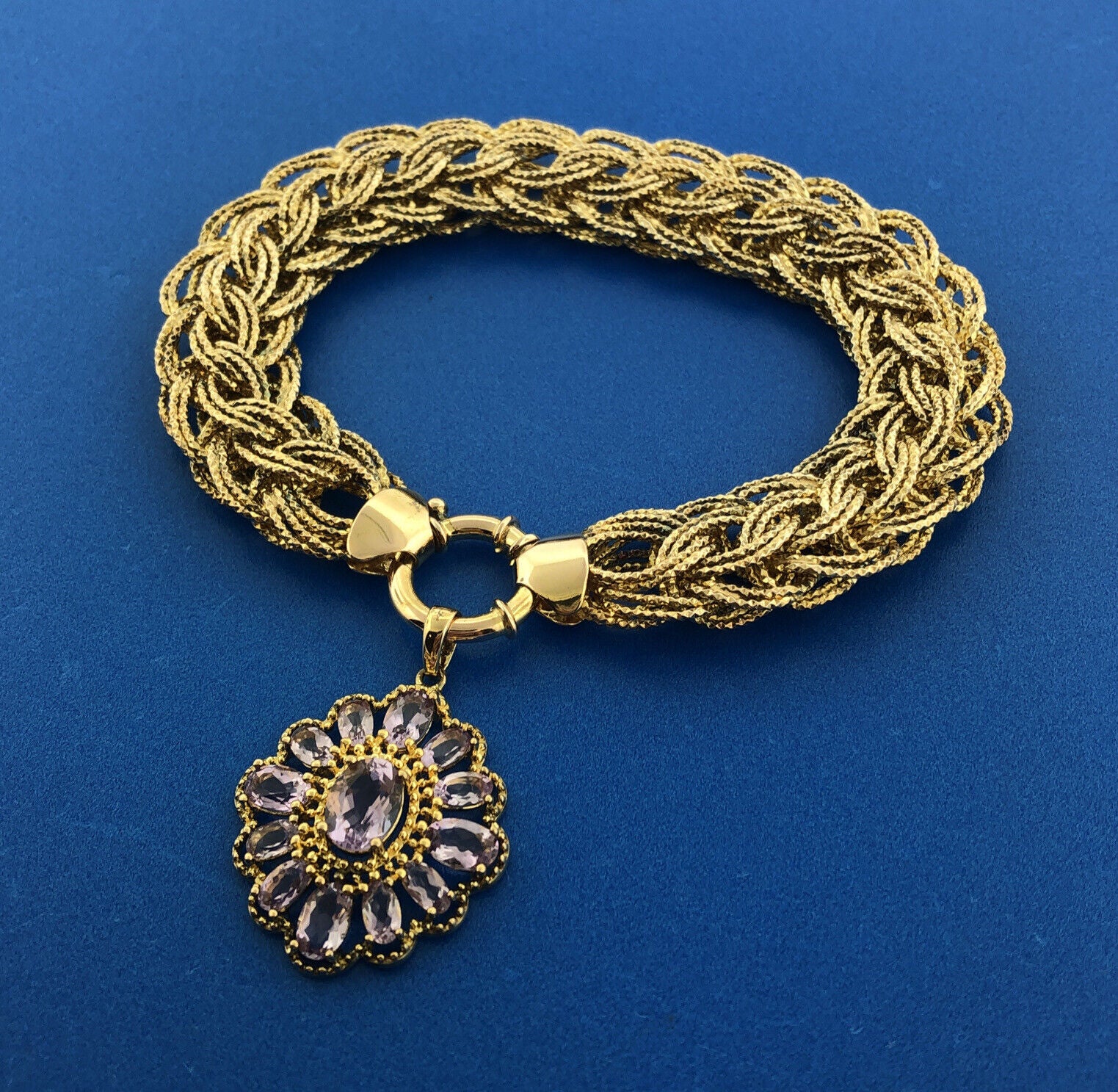 - Designer OT Turkey 925 Sterling Silver Vermeil Amethyst Triple Link Bracelet