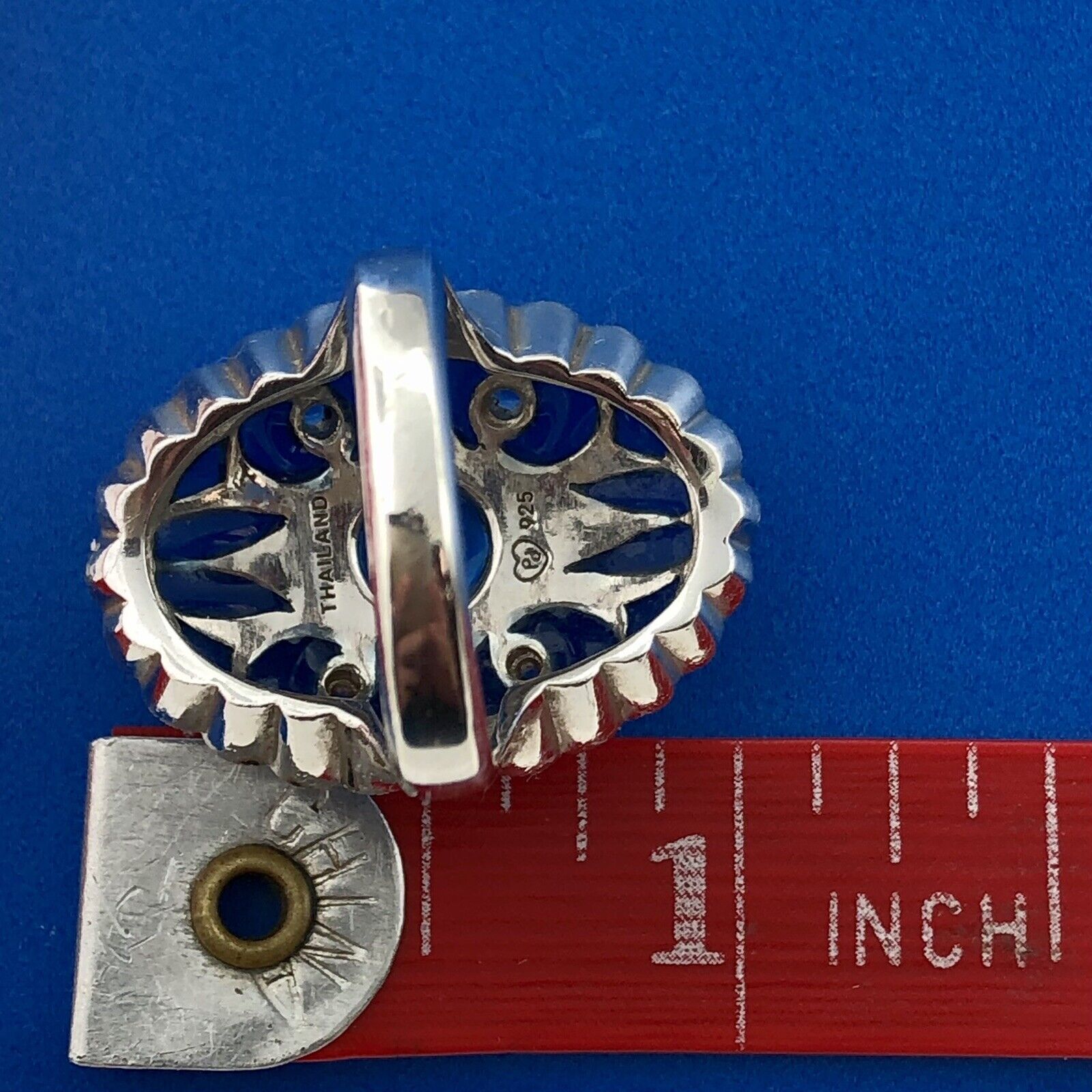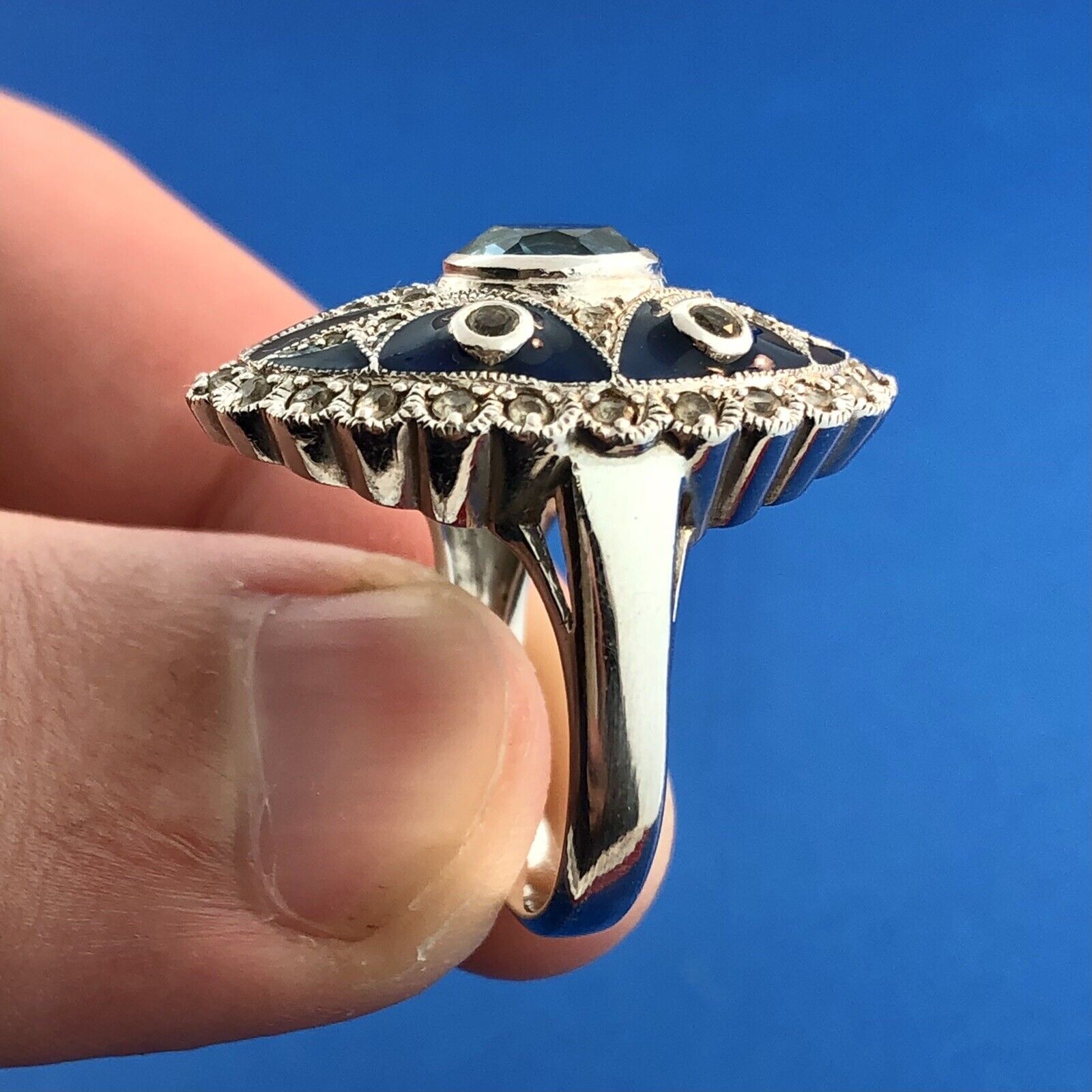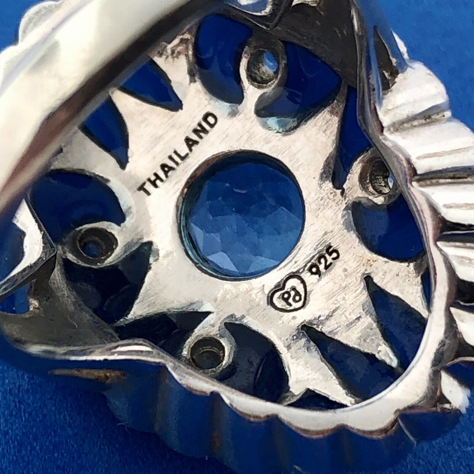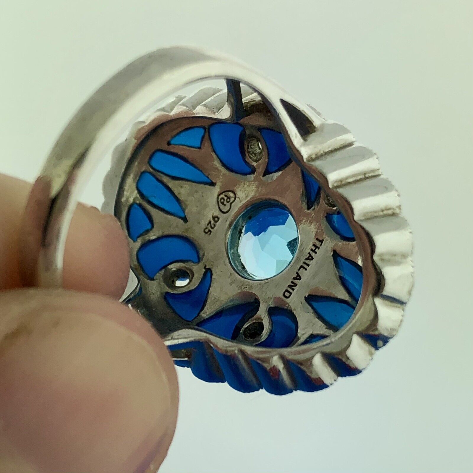 • Designer Pd 925 Sterling Silver Blue Topaz White Amethyst Enamel Statement Ring