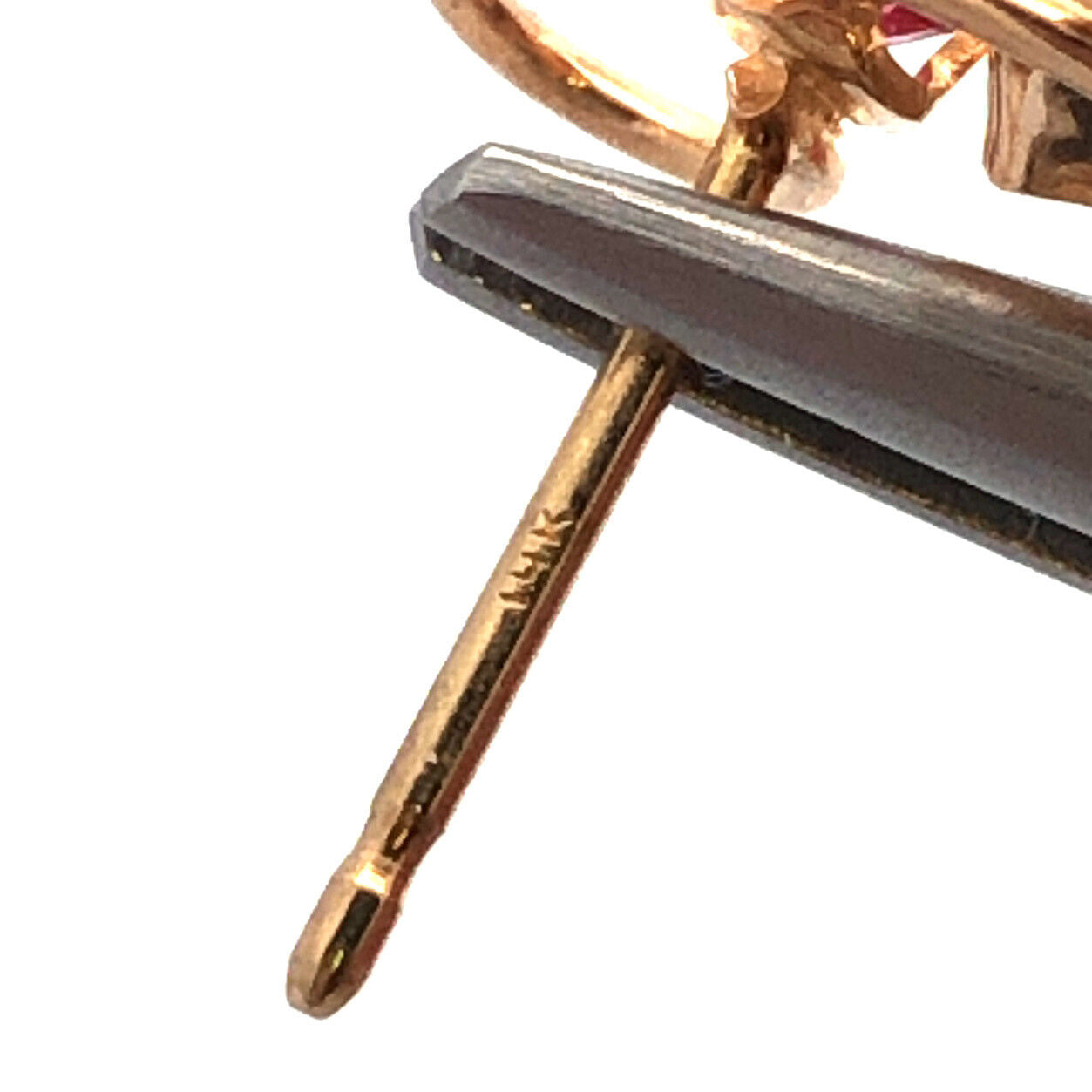 - Designer PPC 14K Yellow Gold Ruby Floral Scroll Stud Earrings