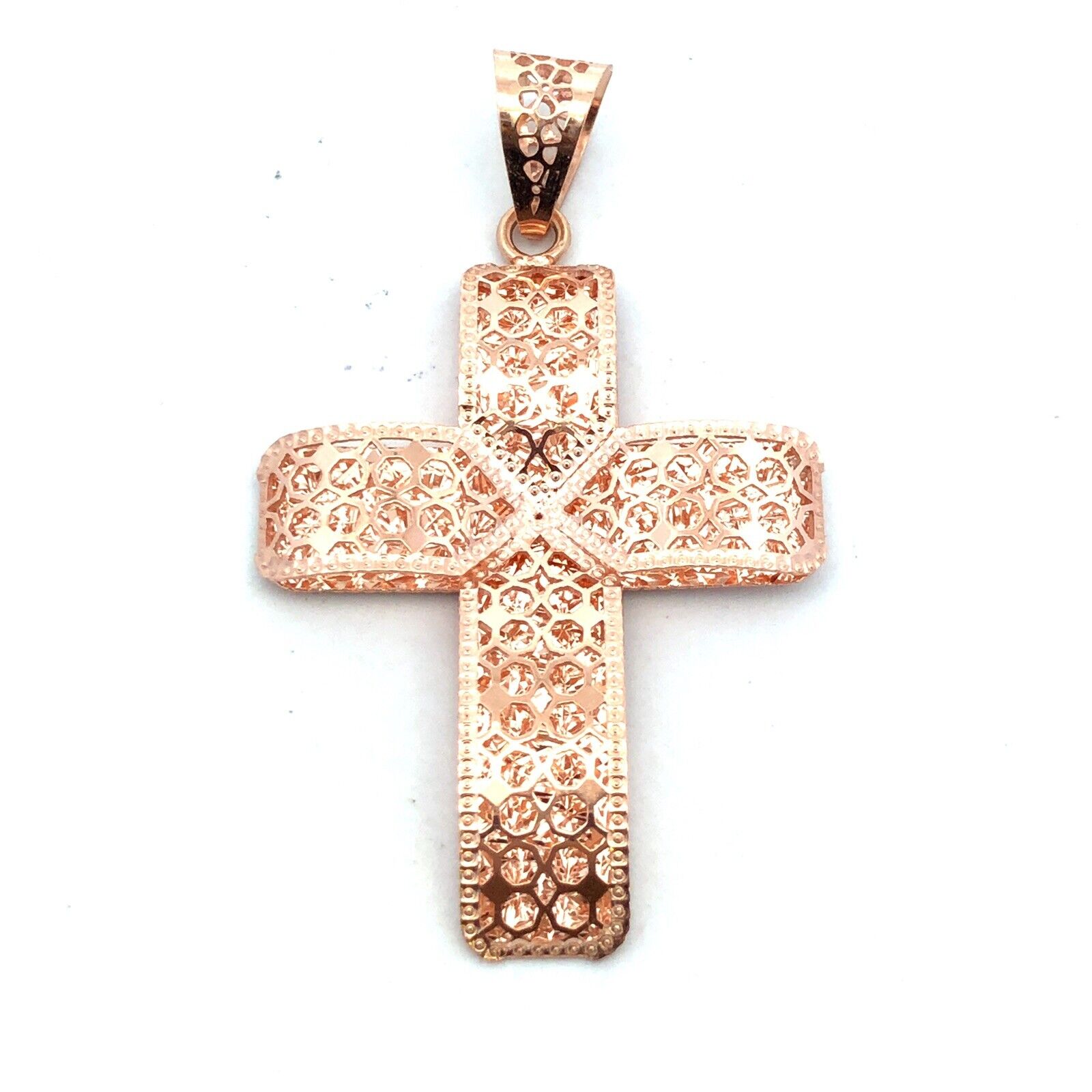 - Designer QG Italy 14K Rose Gold Textured Open Work Cross Pendant