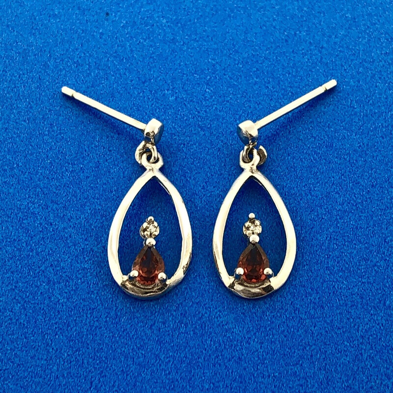 Designer QG Sterling Silver Garnet Diamond Openwork Teardrop Dangle Earrings