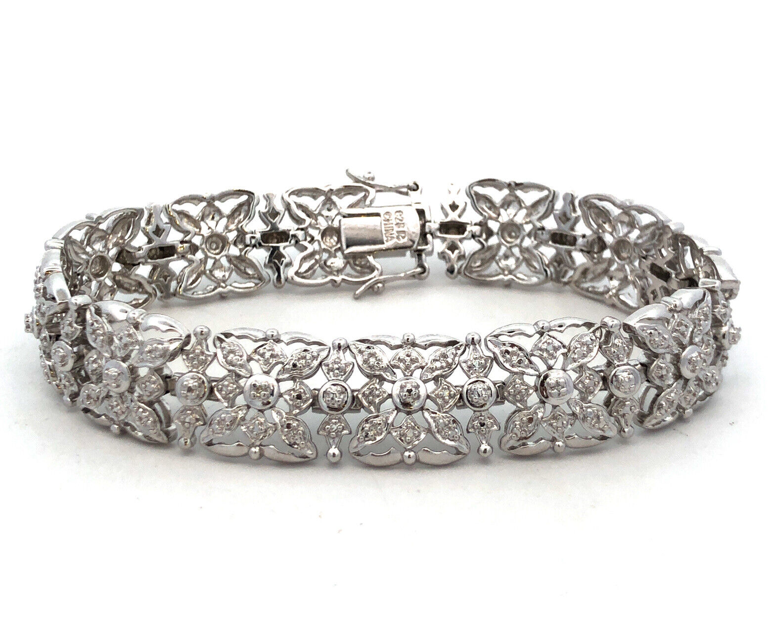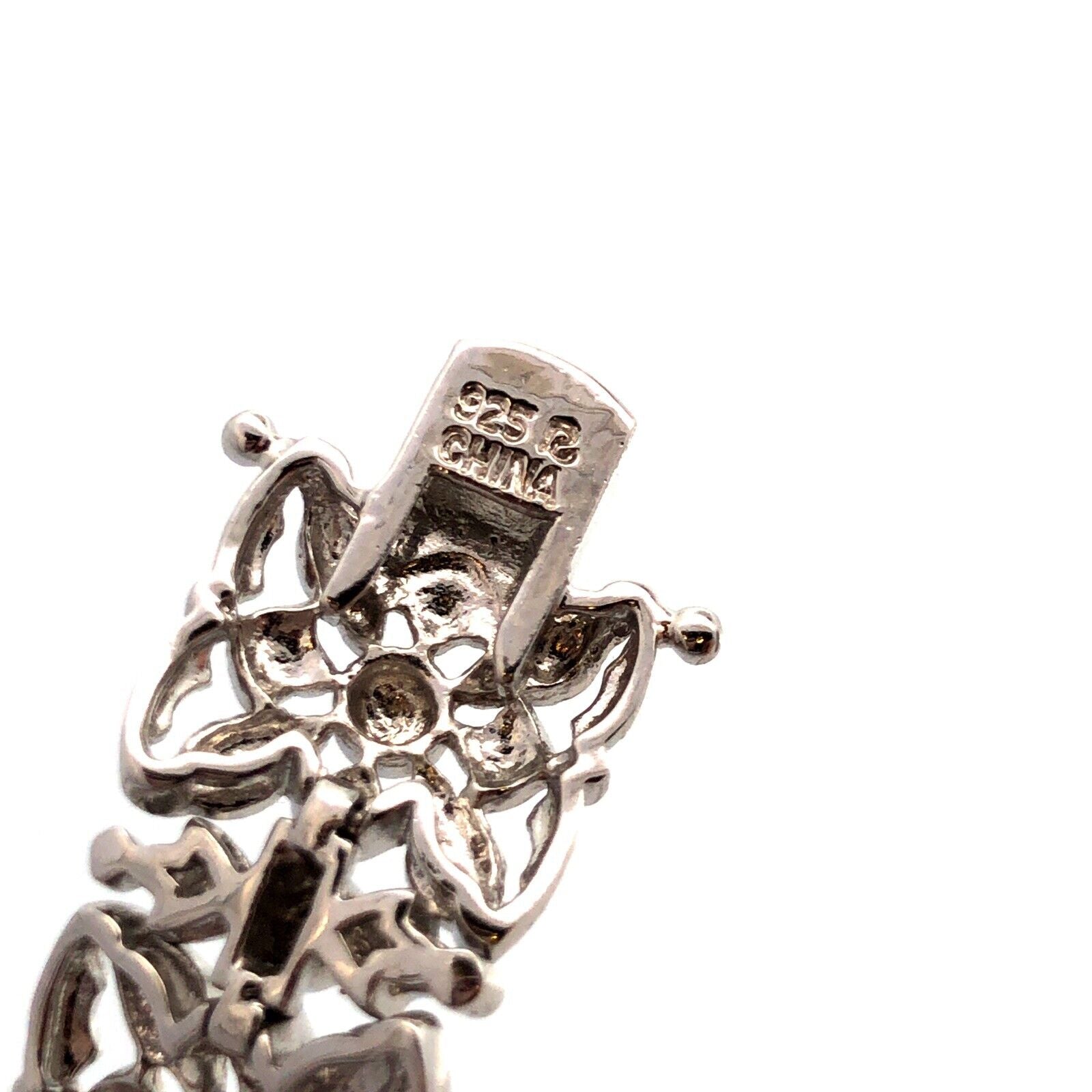 Designer R 925 Sterling Silver Diamond Open Work Textured Statement Bracelet