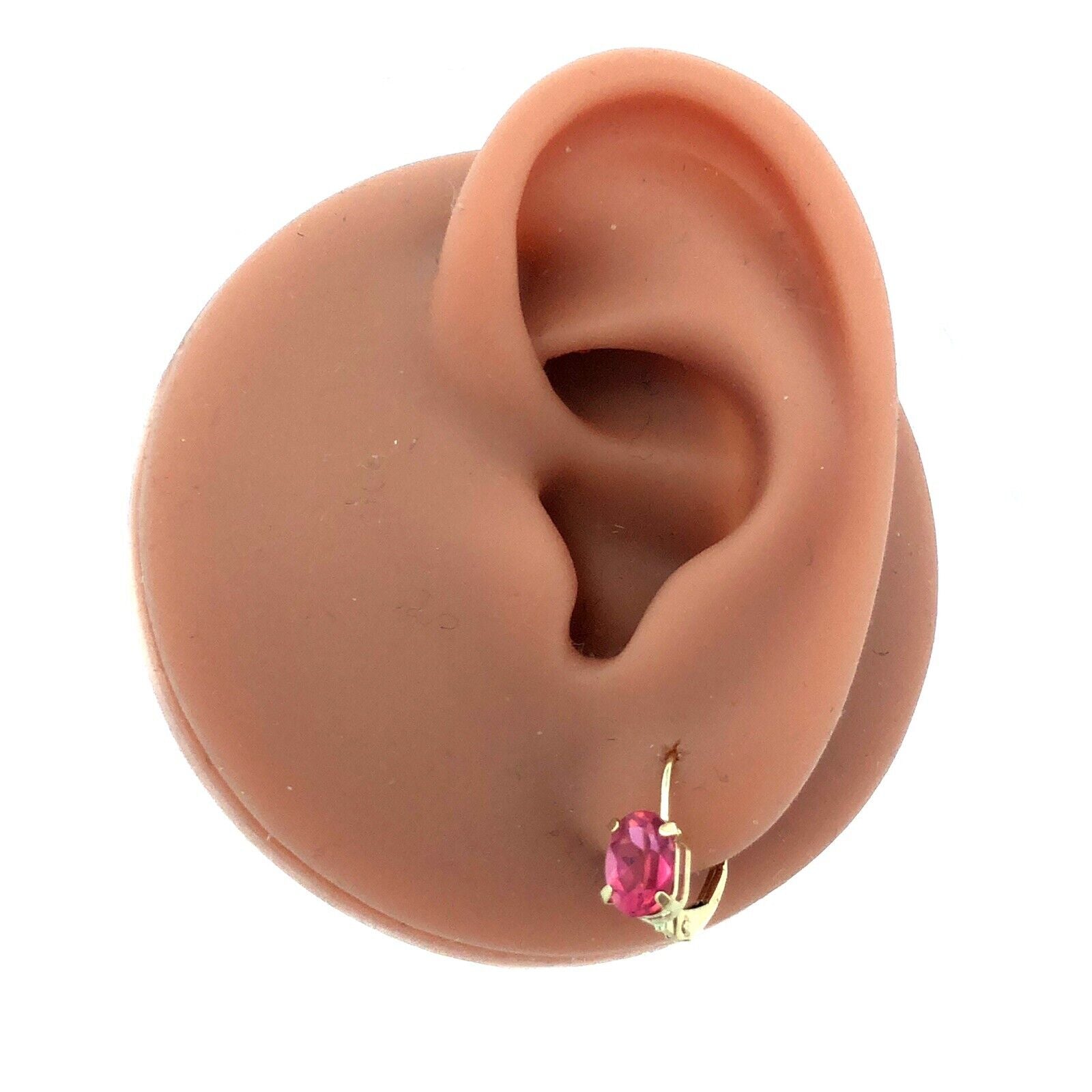 - Designer RGE 14K Yellow Gold Oval Pink Tourmaline Solitaire Dangle Earrings