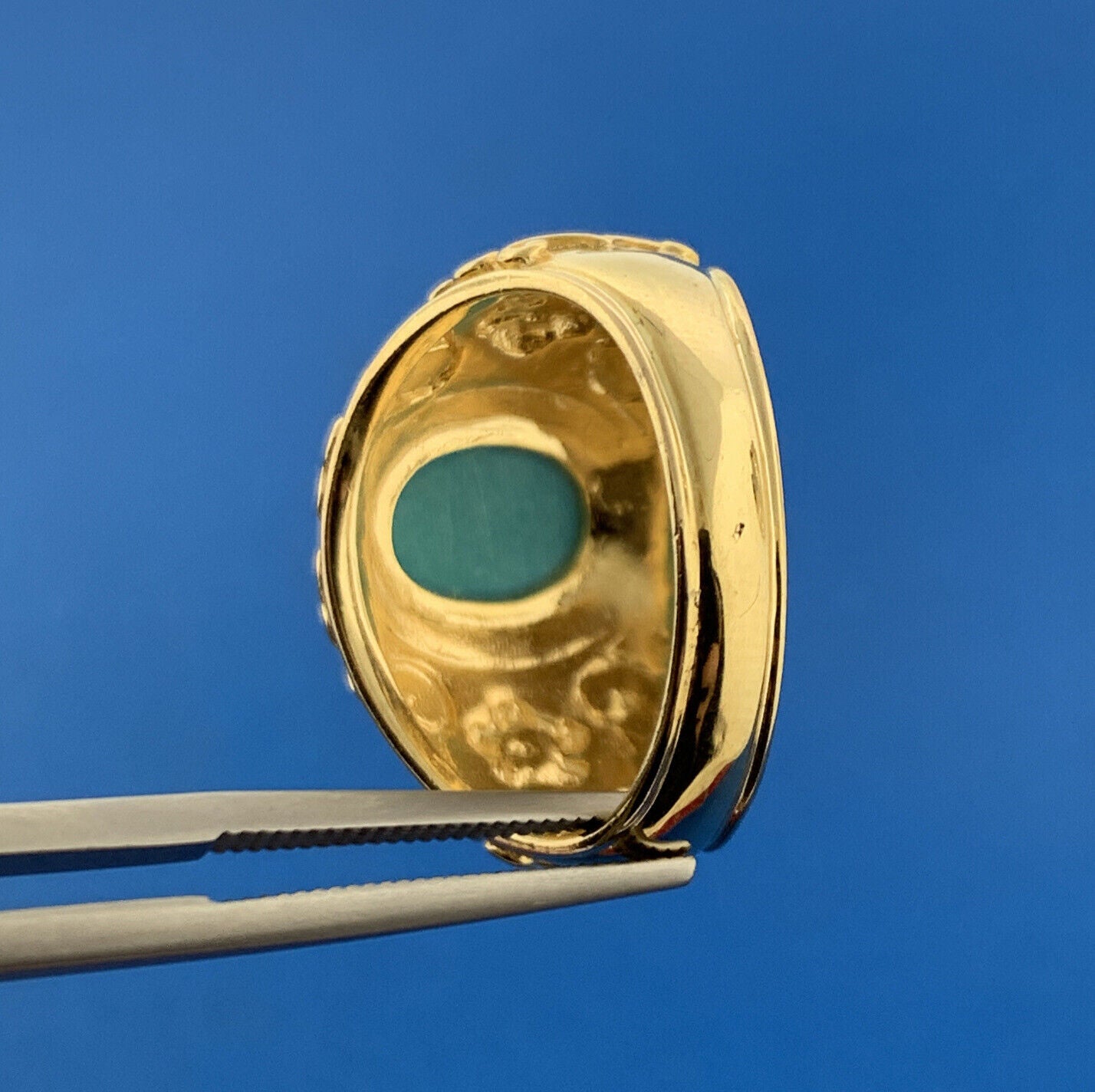 Designer RL Sterling Silver Vermeil Faceted Turquoise Floral Statement Dome Ring