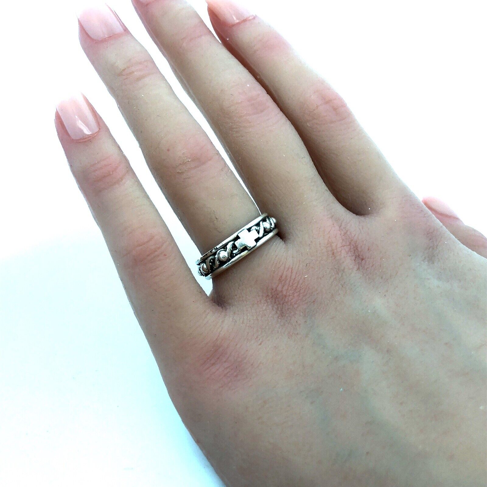 Designer Shavarsh K 925 Sterling Silver Cross Crown Thorns Stackable Band Ring