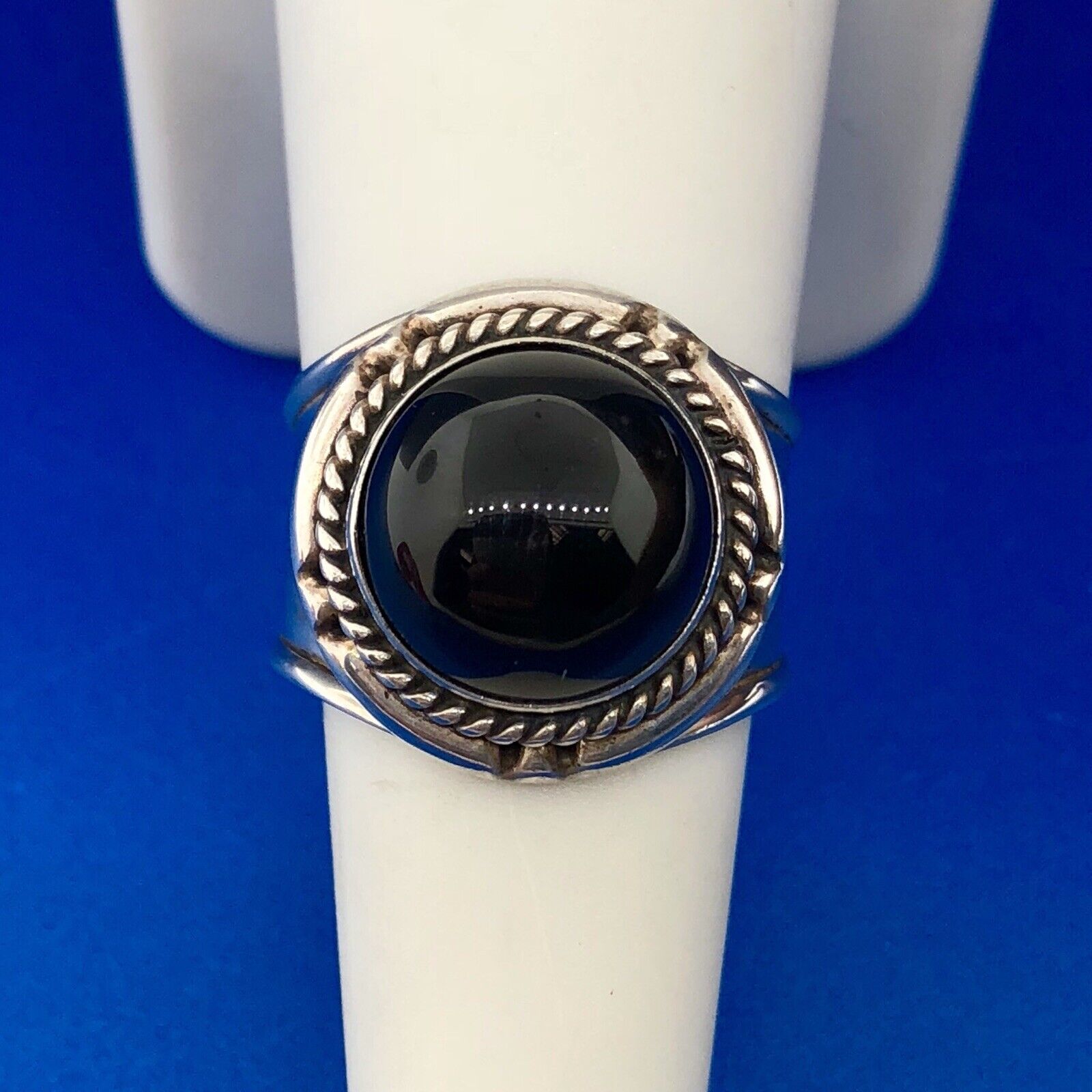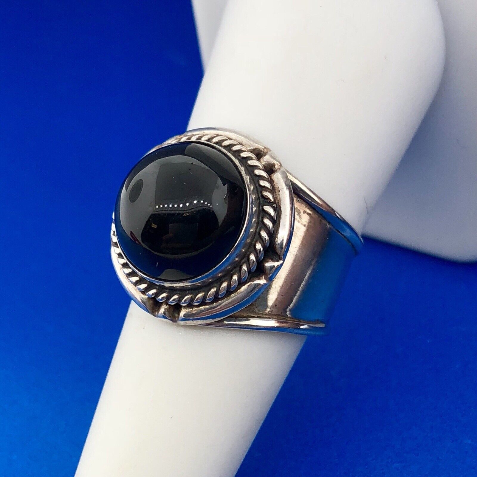 - Designer Sterling Silver 925 Black Onyx Concho Style Wide Cigar Band Dome Ring