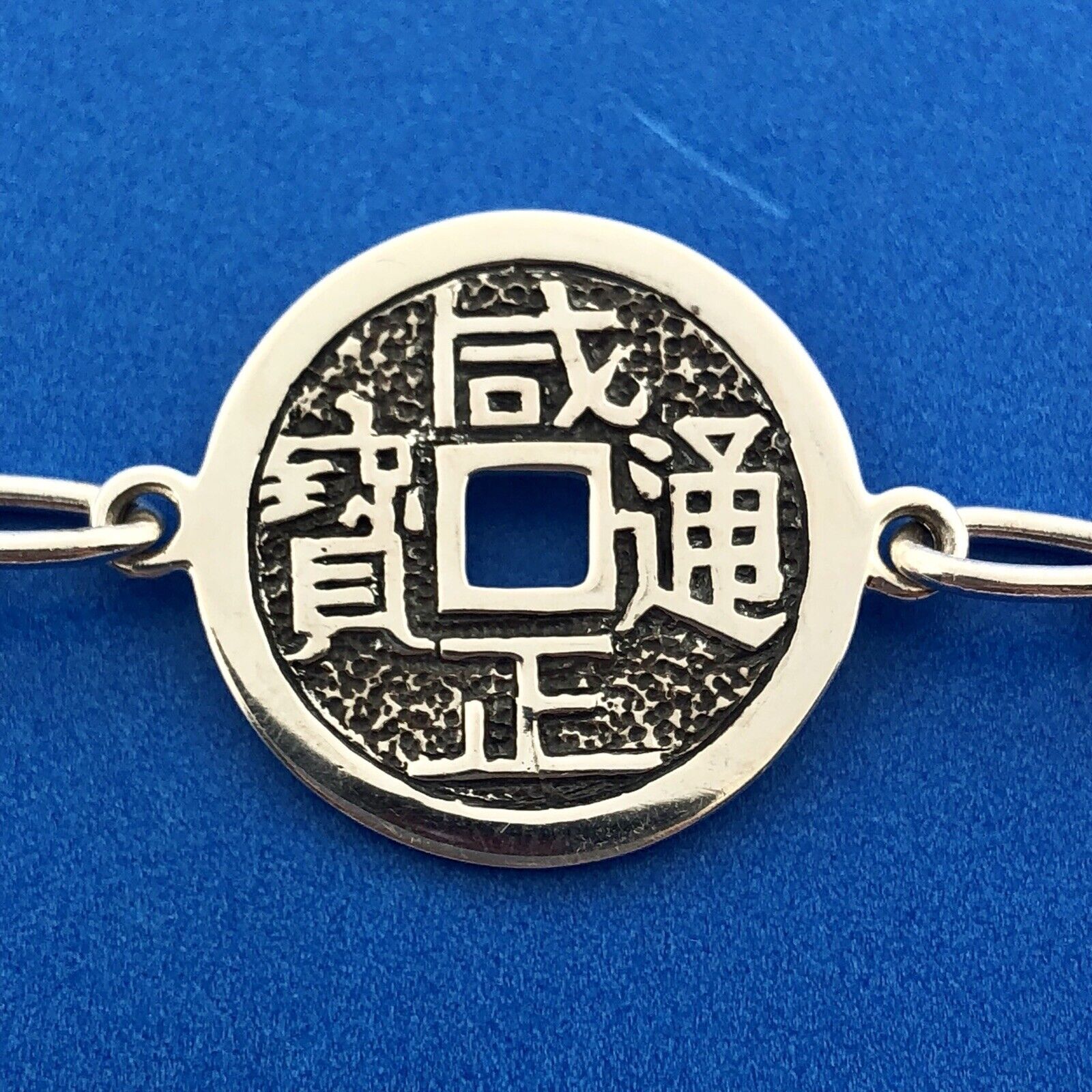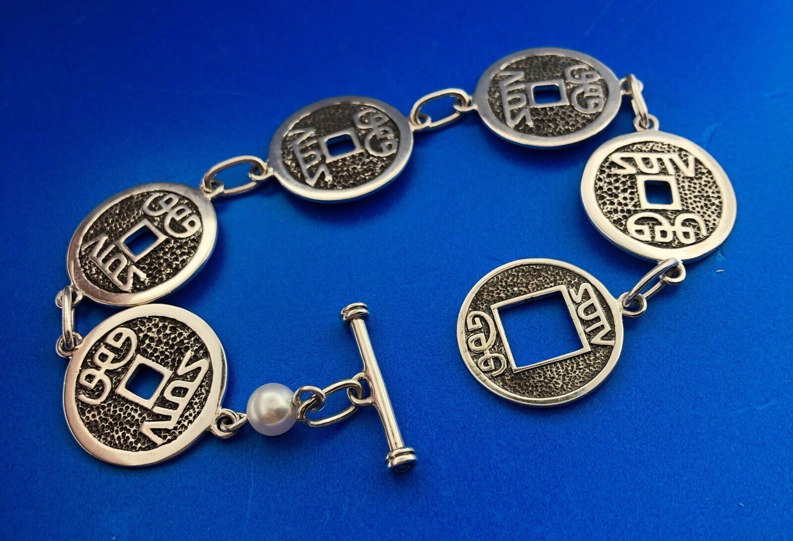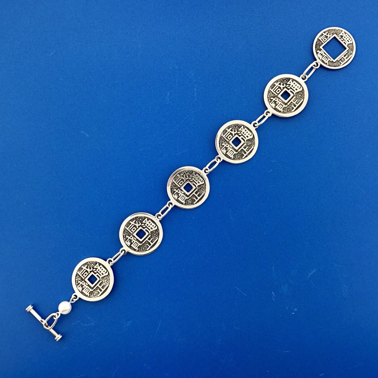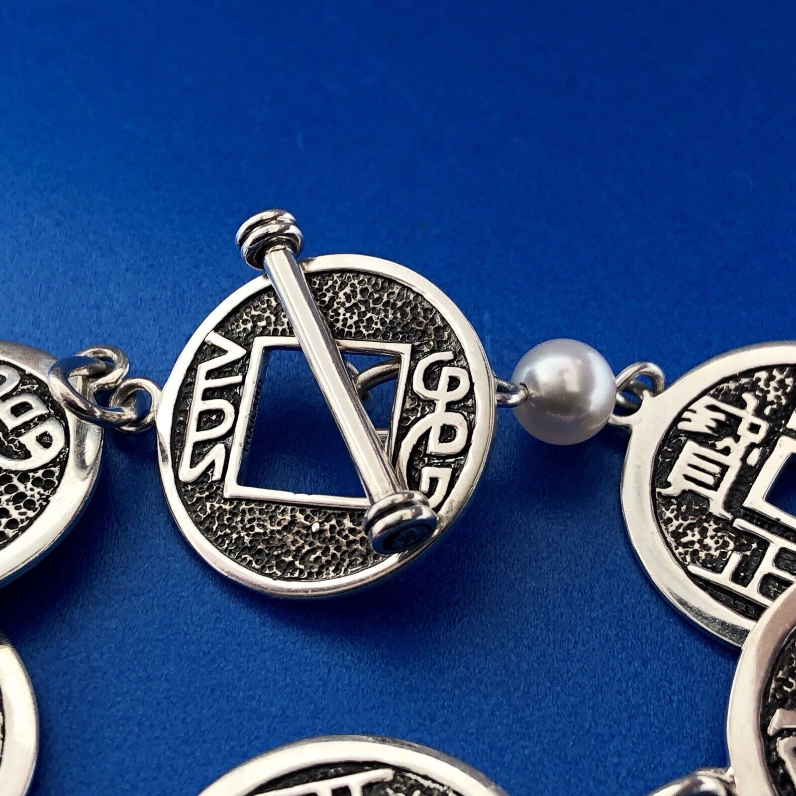 - Designer Sterling Silver 925 Chinese Character Disc Panel Link Toggle Bracelet