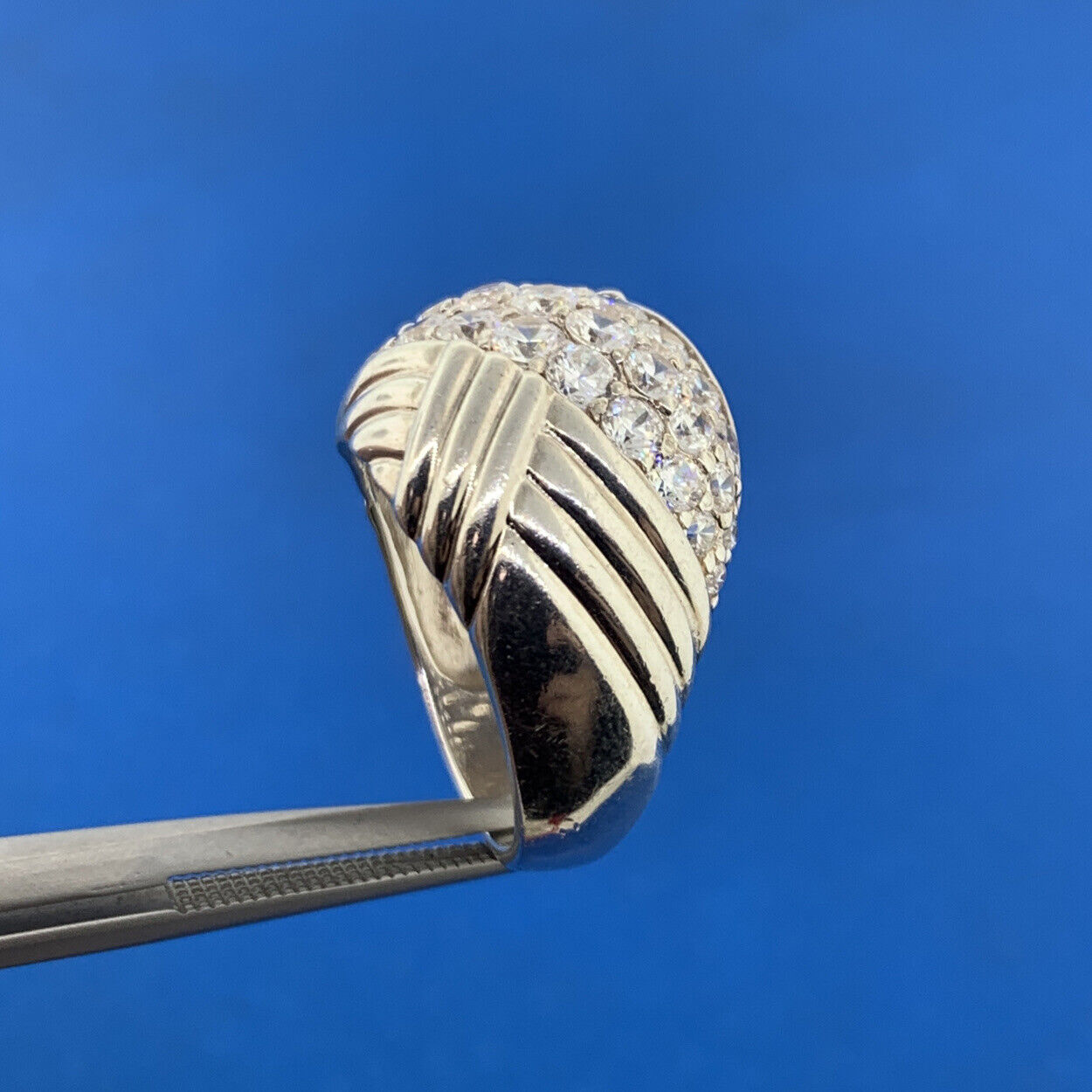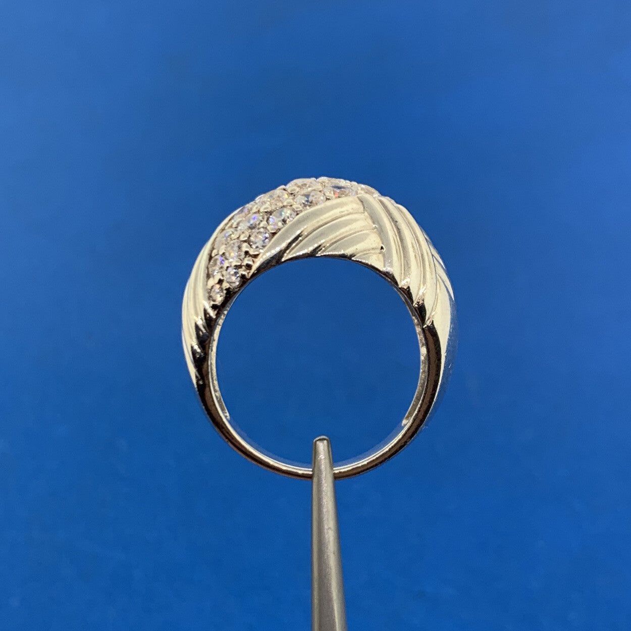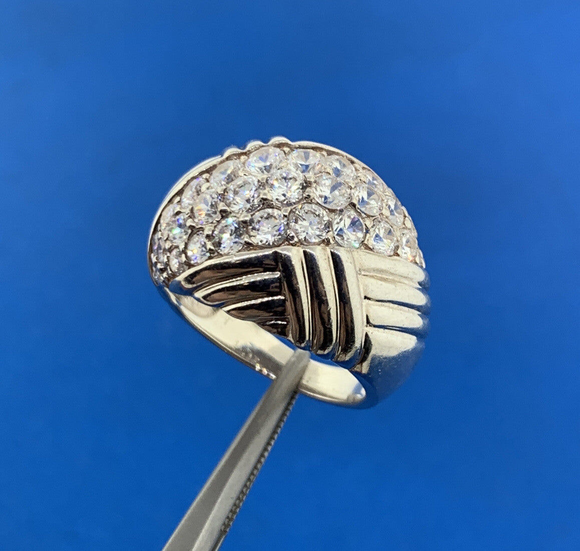 Designer Sterling Silver 925 Cubic Zirconia Tapered Statement Dome Ring