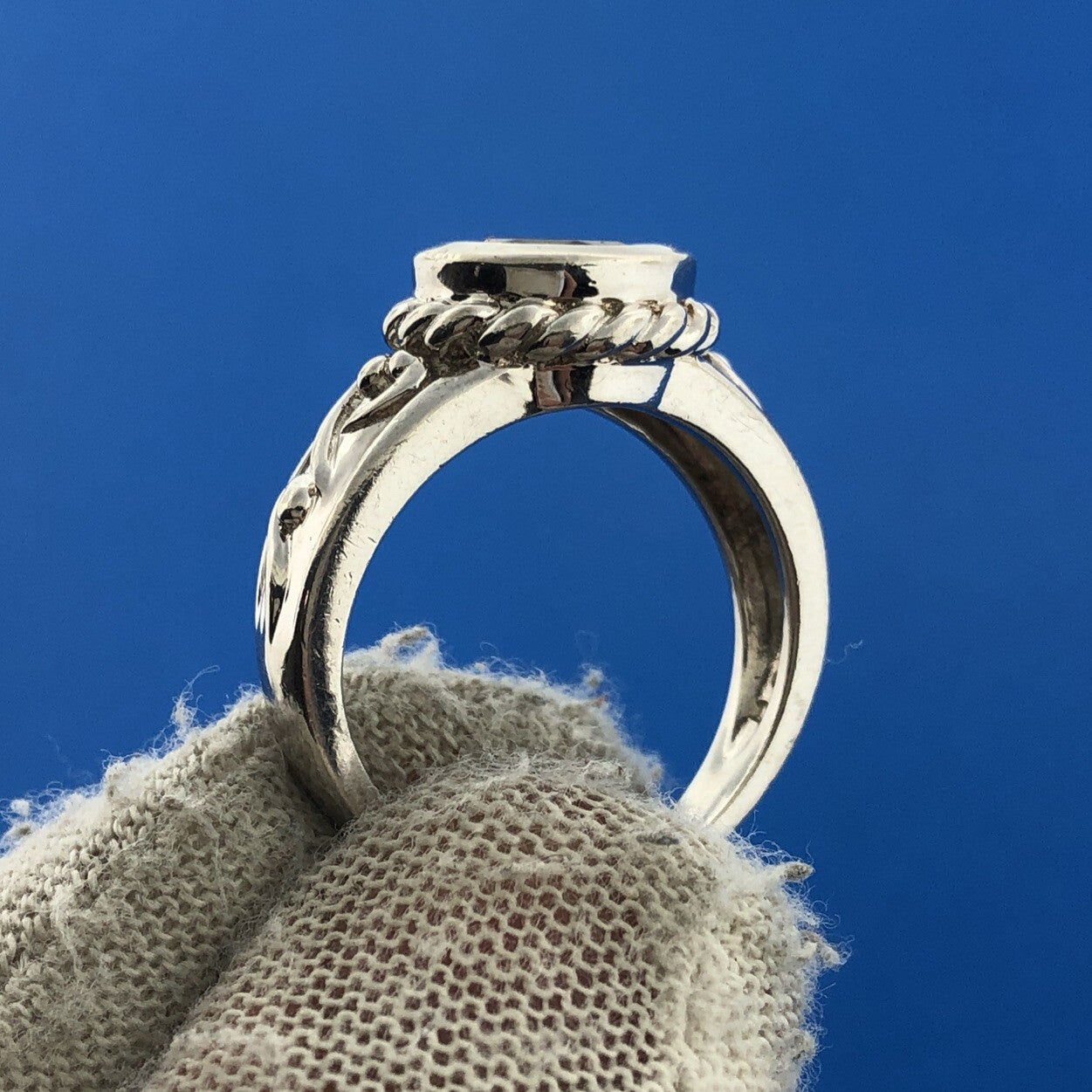 Designer Sterling Silver 925 Garnet Bead Scroll Work January Cocktail Ring