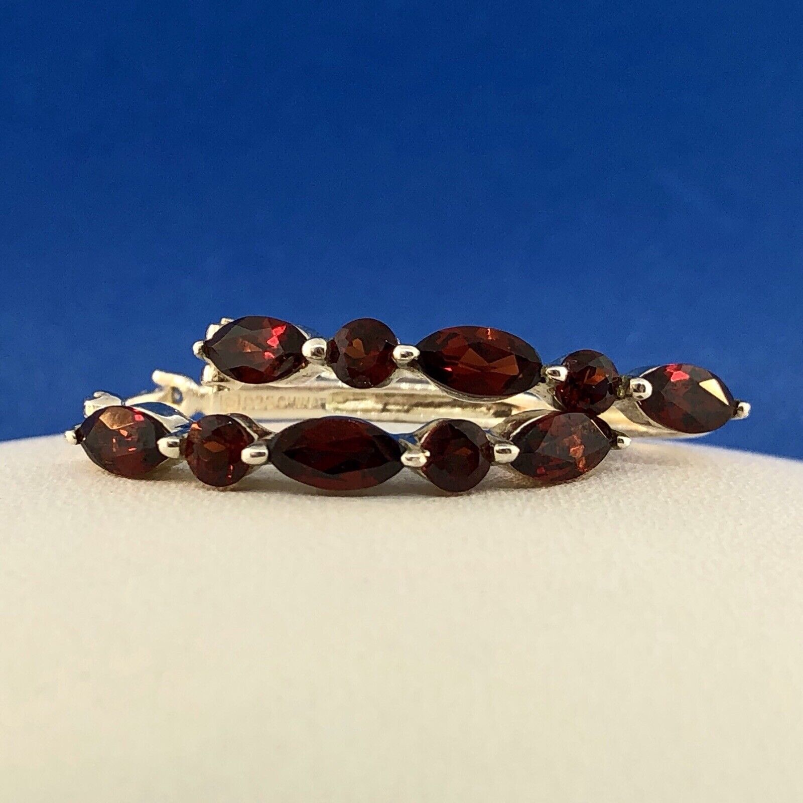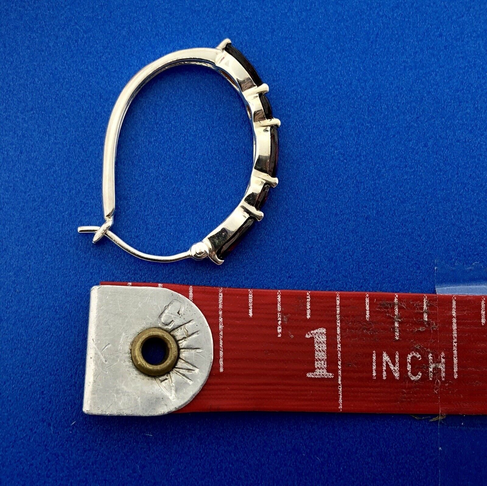 - Designer Sterling Silver 925 Garnet January Anniversary Occasion Hoop Earrings