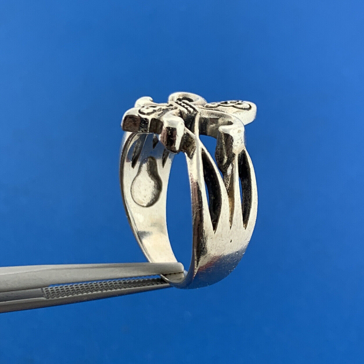 - Designer Sterling Silver 925 Openwork Runic Pattern Fleur De Lis Ring Size 8.75
