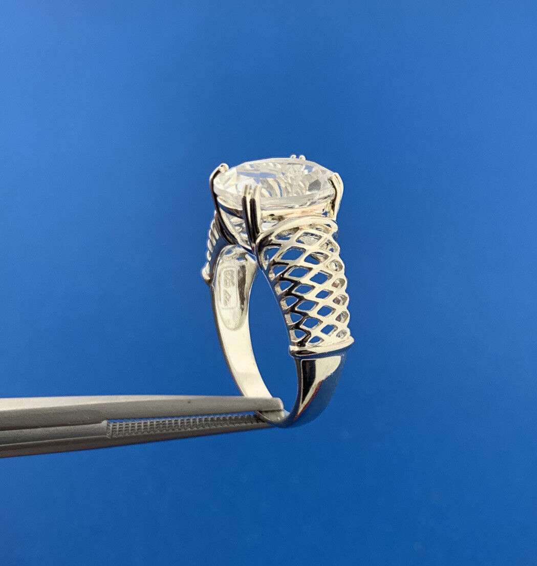 Designer Sterling Silver 925 Oval Cubic Zirconia CZ Statement Cocktail Ring