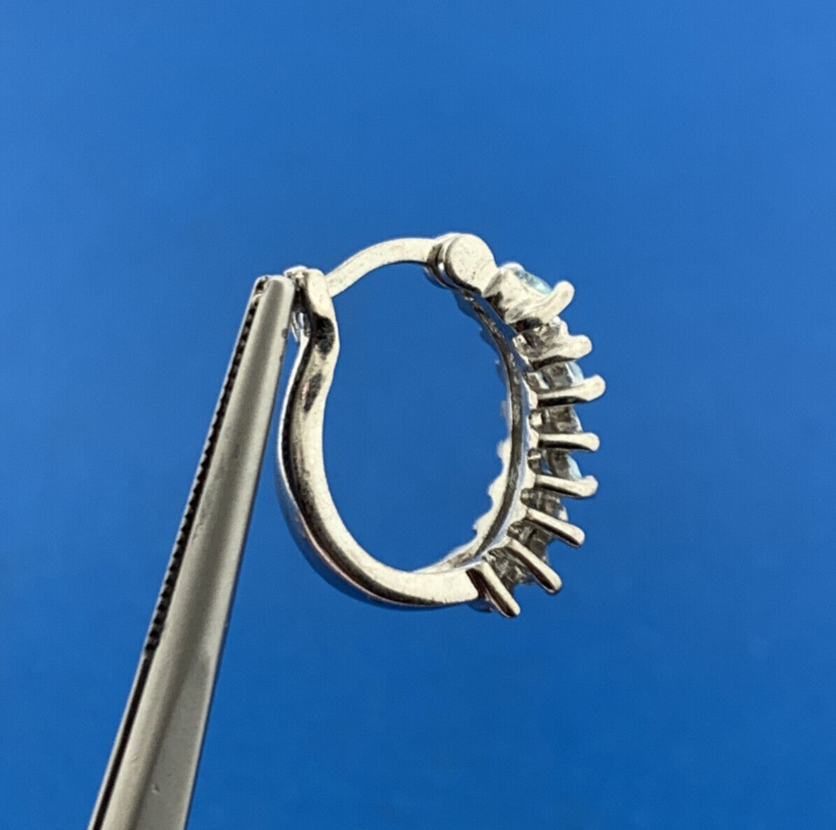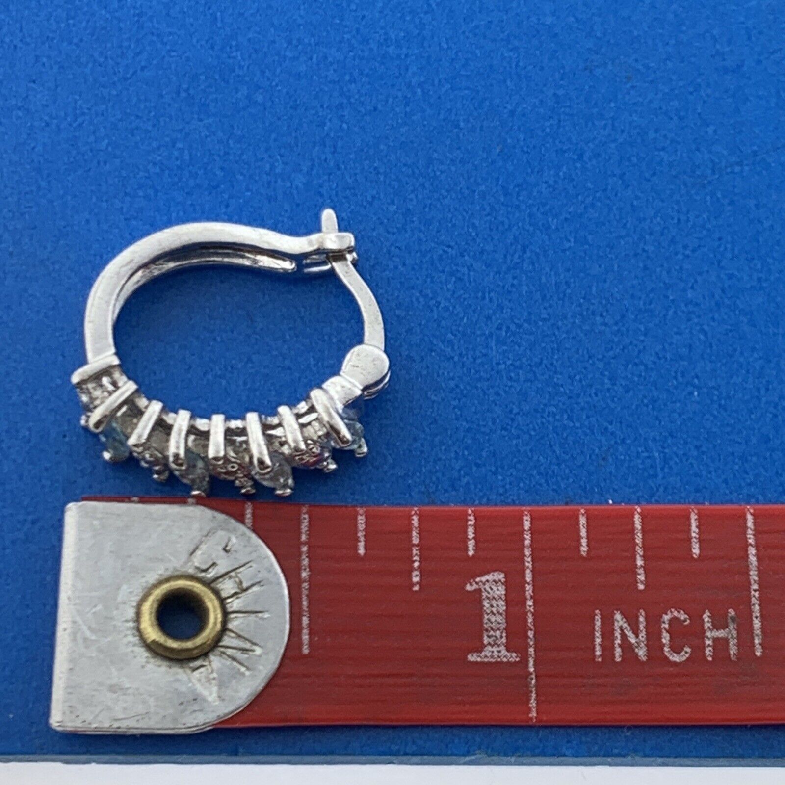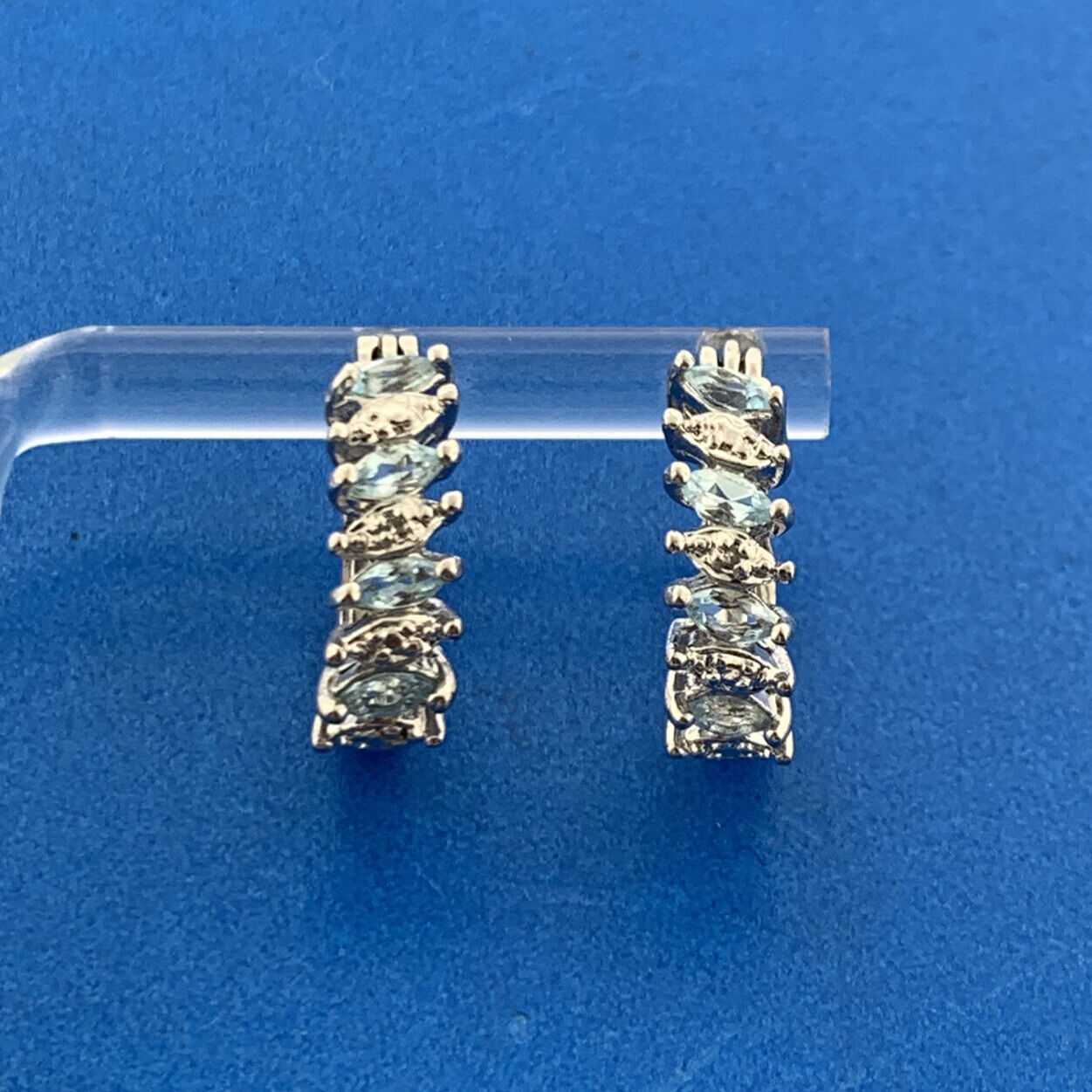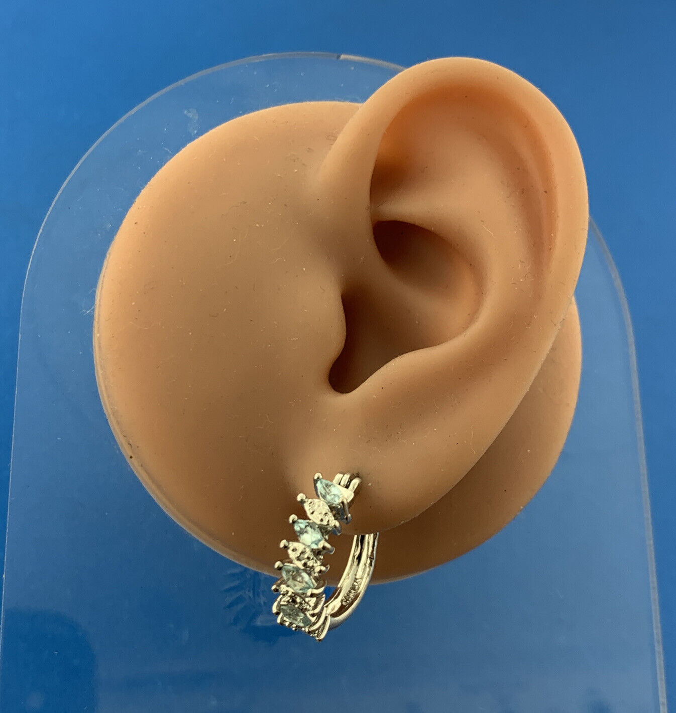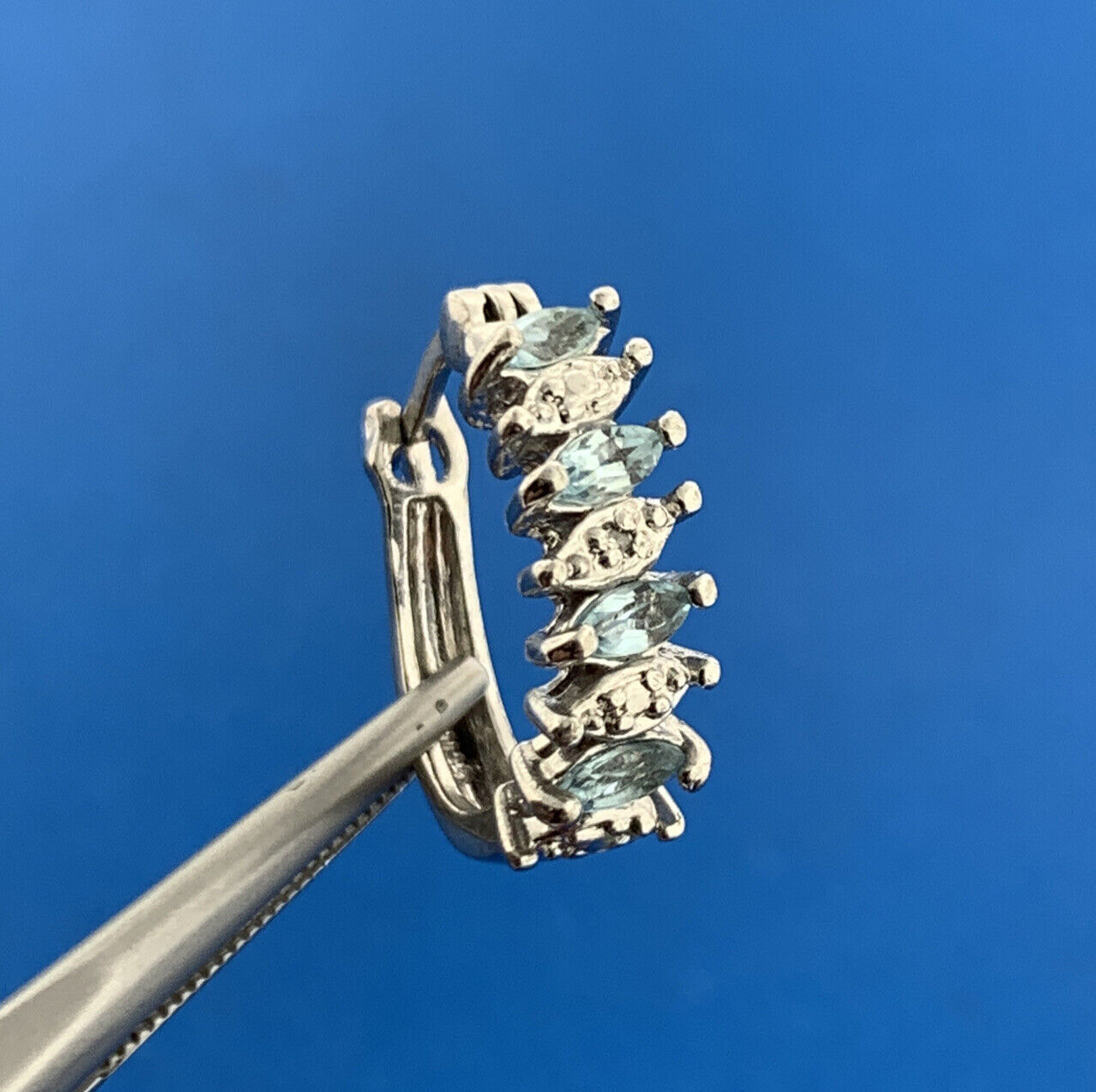 - Designer Sterling Silver Marquise Aquamarine Diamond Accented Half Hoop Earrings
