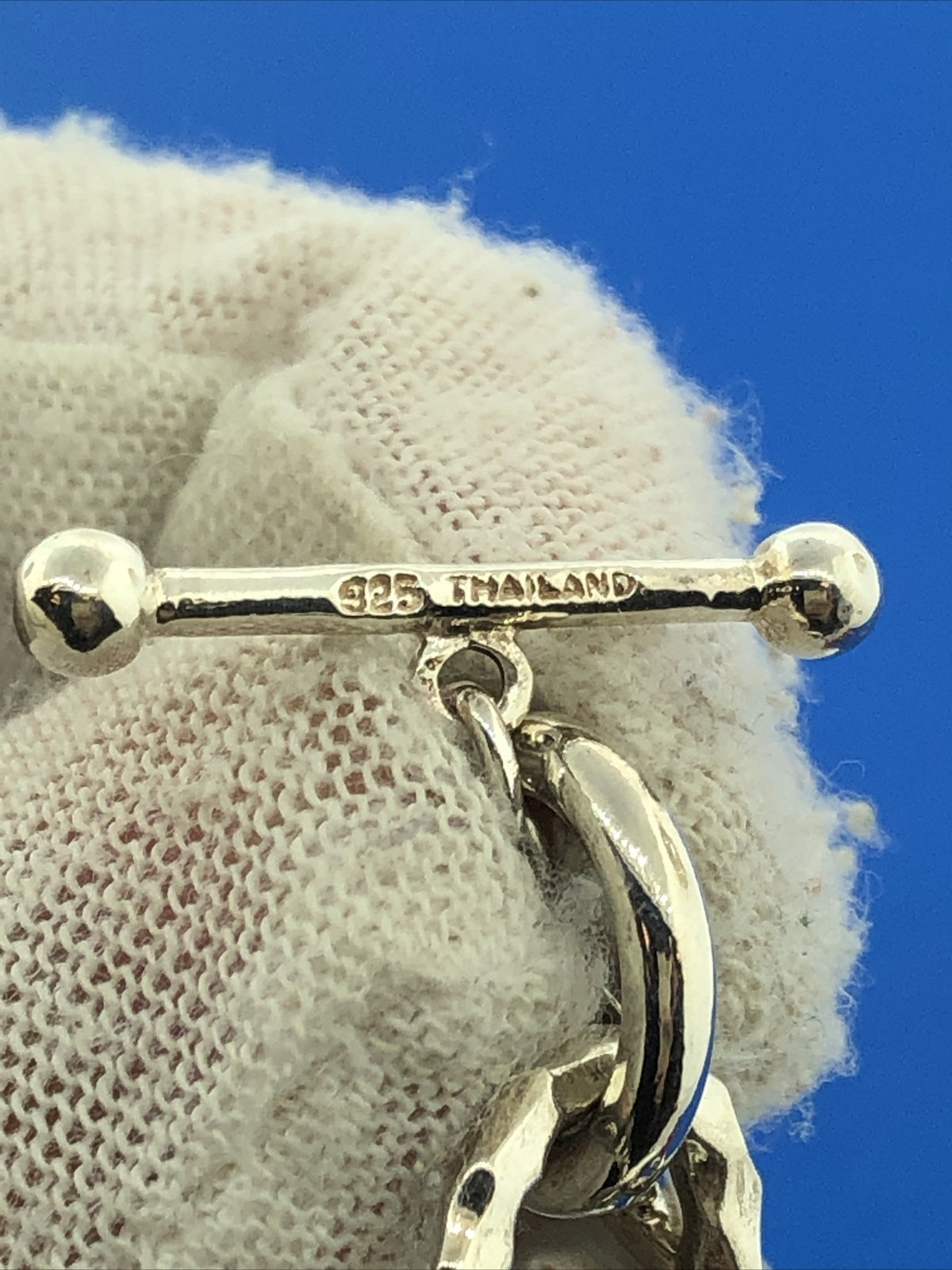 - Designer Sterling Silver Mother Of Pearl Disc Panel Statement Toggle Bracelet