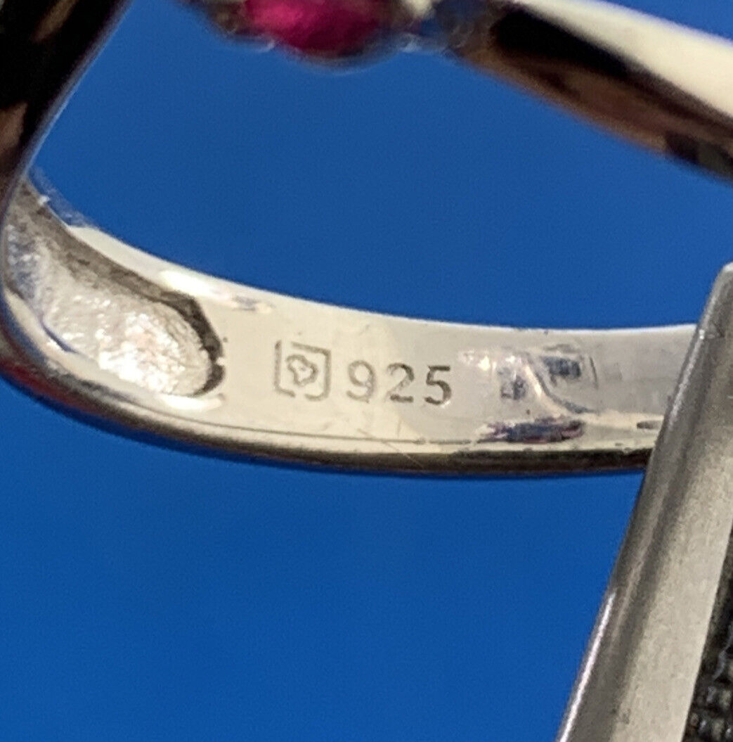 - Designer Sterling Silver Pink Blue Cubic Zirconia Butterfly Flower Bypass Ring
