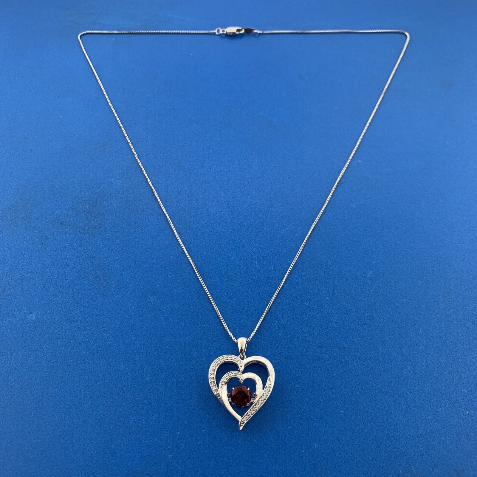 - Designer Sterling Silver Red Spinel Diamond Accent Double Heart Pendant Necklace