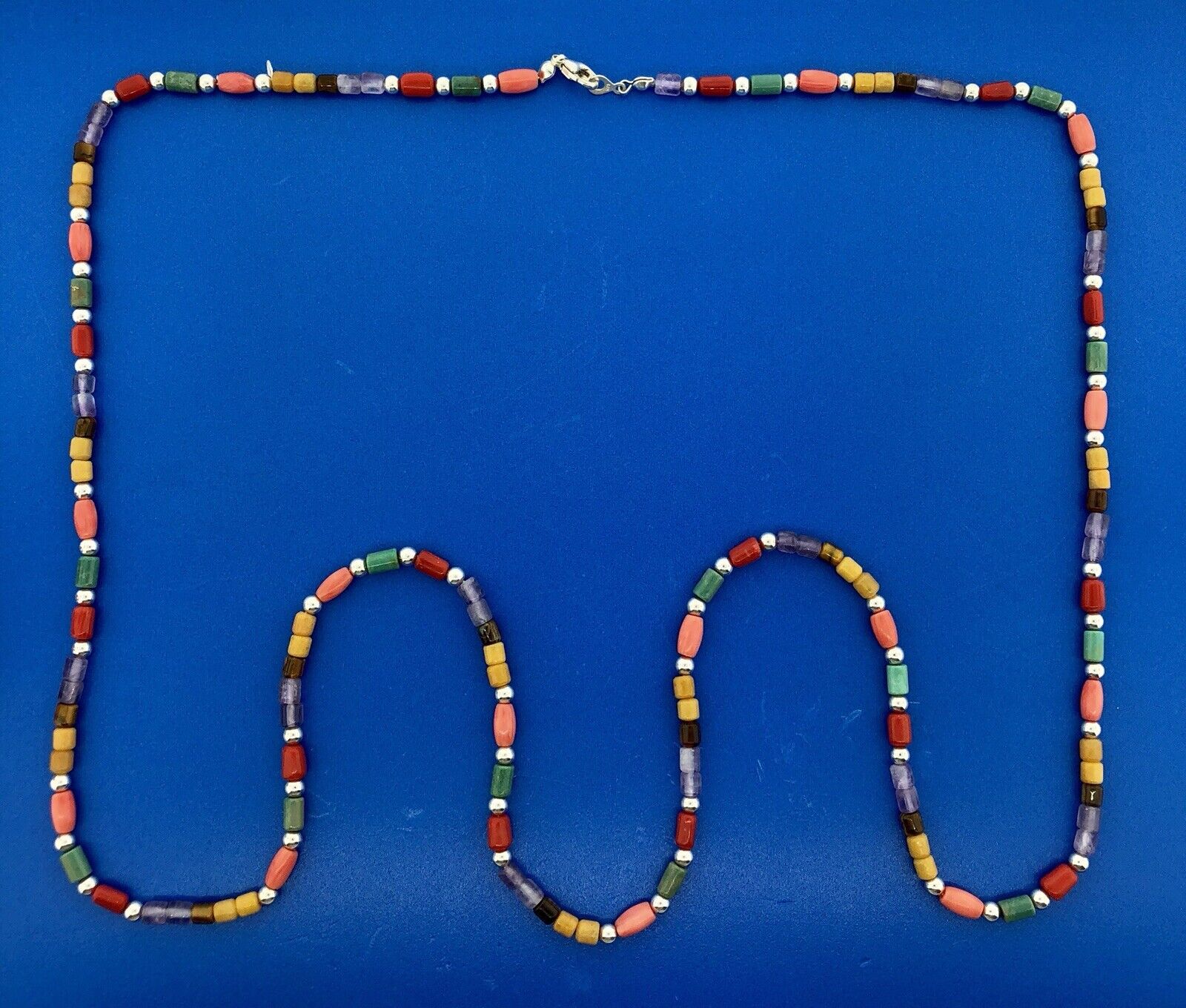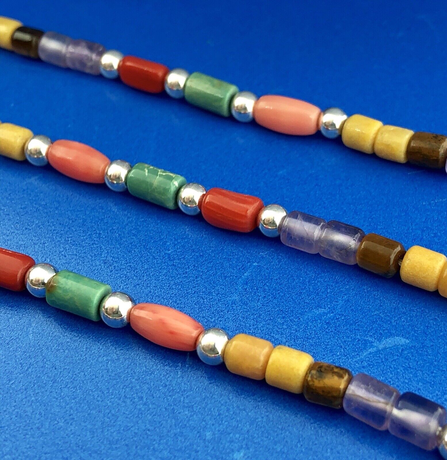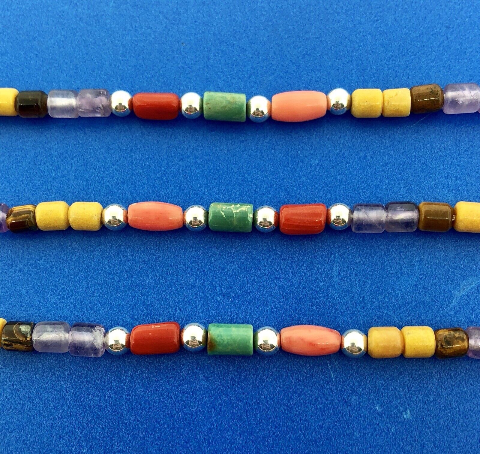 - Designer Sterling Silver Turquoise Coral Amethyst Japser Tigers Eye Necklace