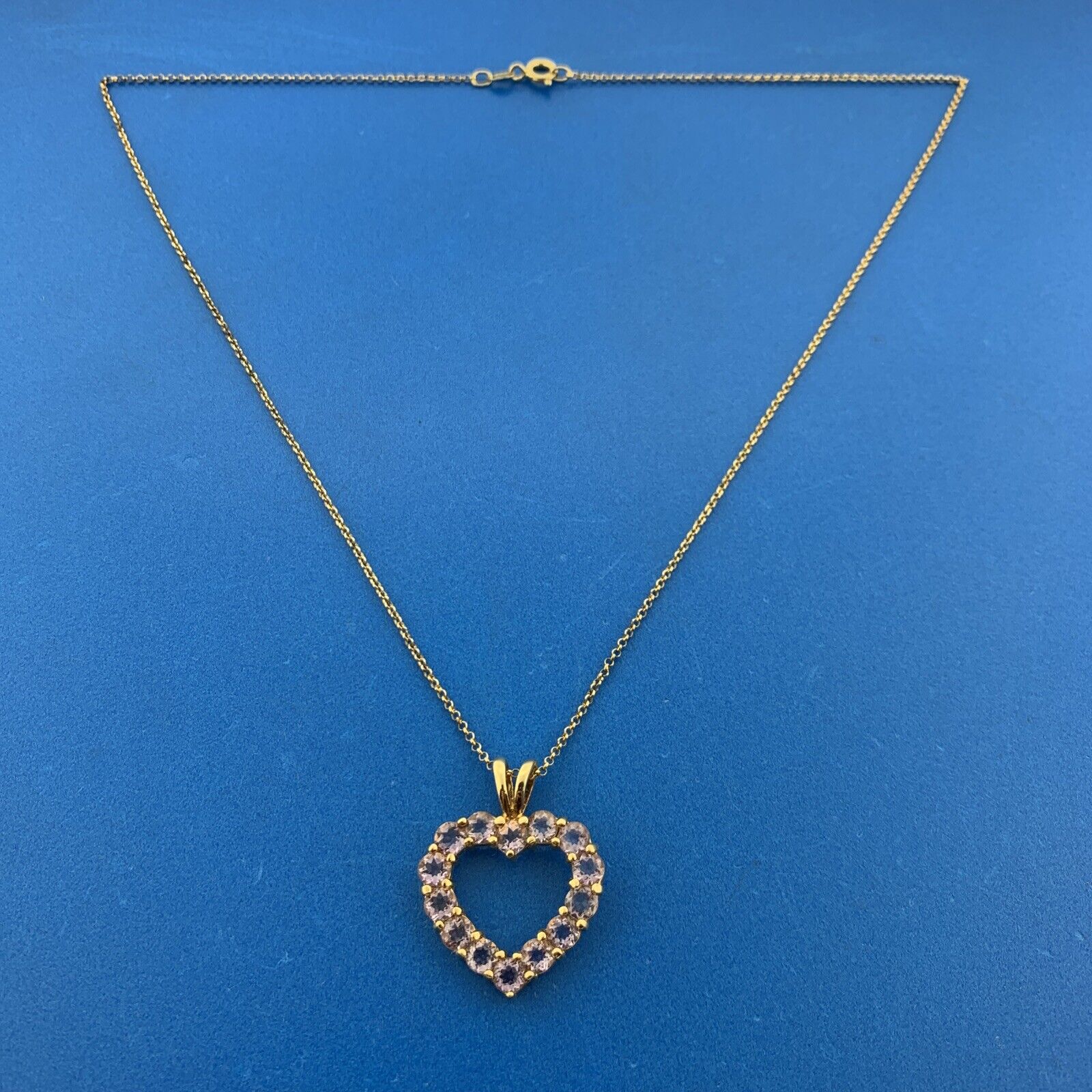 - Designer Sterling Silver Vermeil Amethyst Heart February Anniversary Necklace