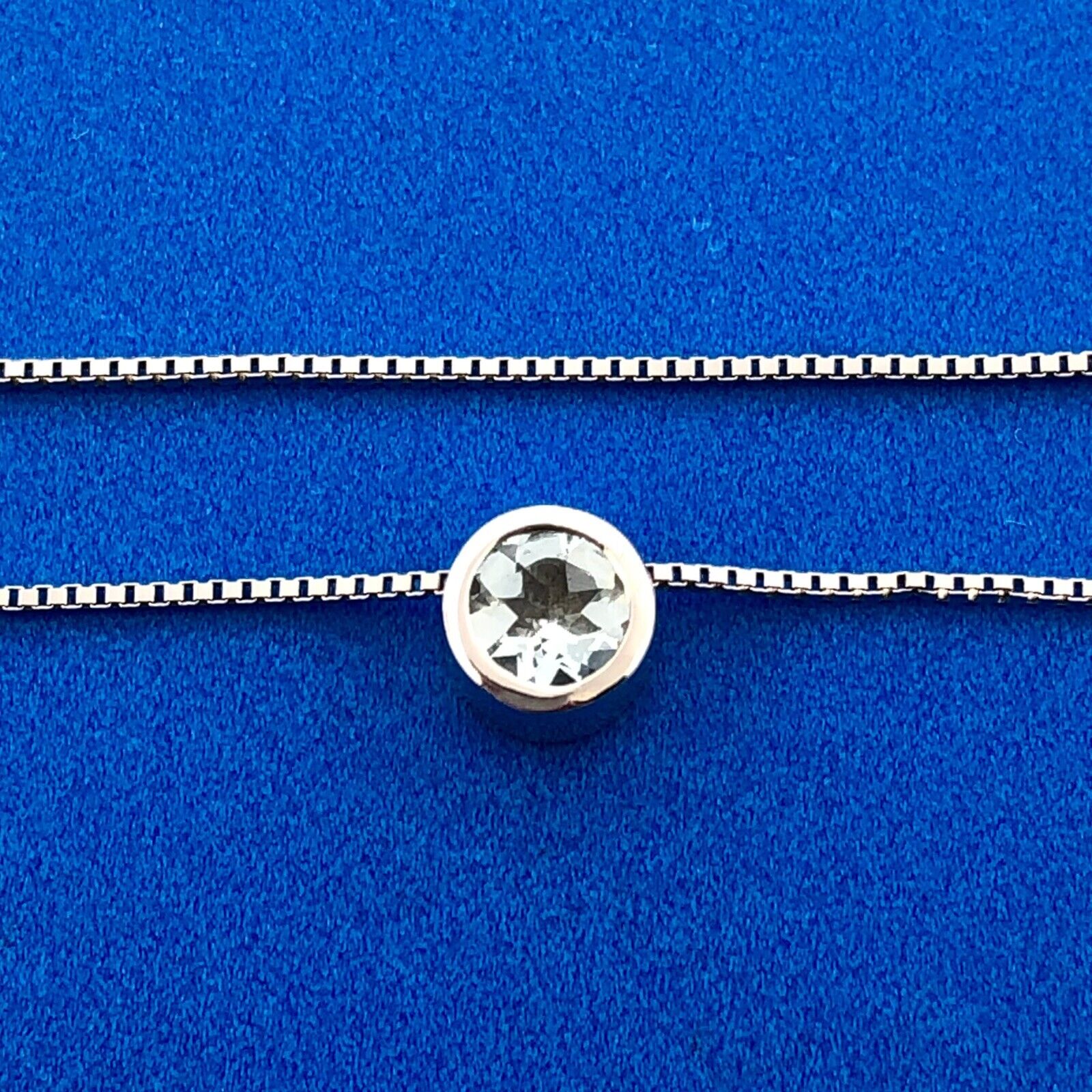 - Designer STS 925 Sterling Silver 19" Box Chain Round Cubic Zirconia CZ Necklace