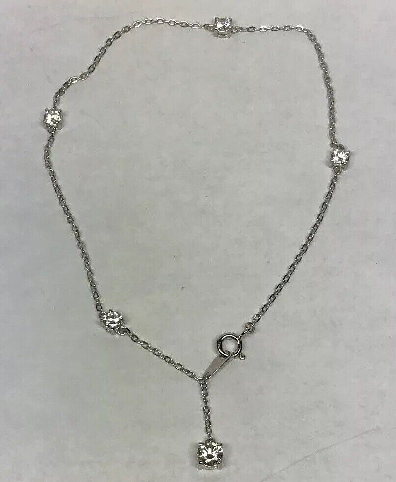 Designer SV Sterling Silver 925 Cubic Zirconia CZ Station Ankle Bracelet