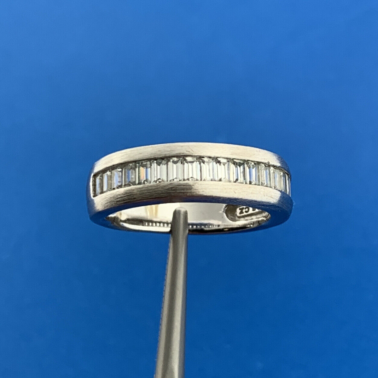 Designer SW Sterling Silver 925 Baguette CZ Brushed Channel Set Ring Size 6