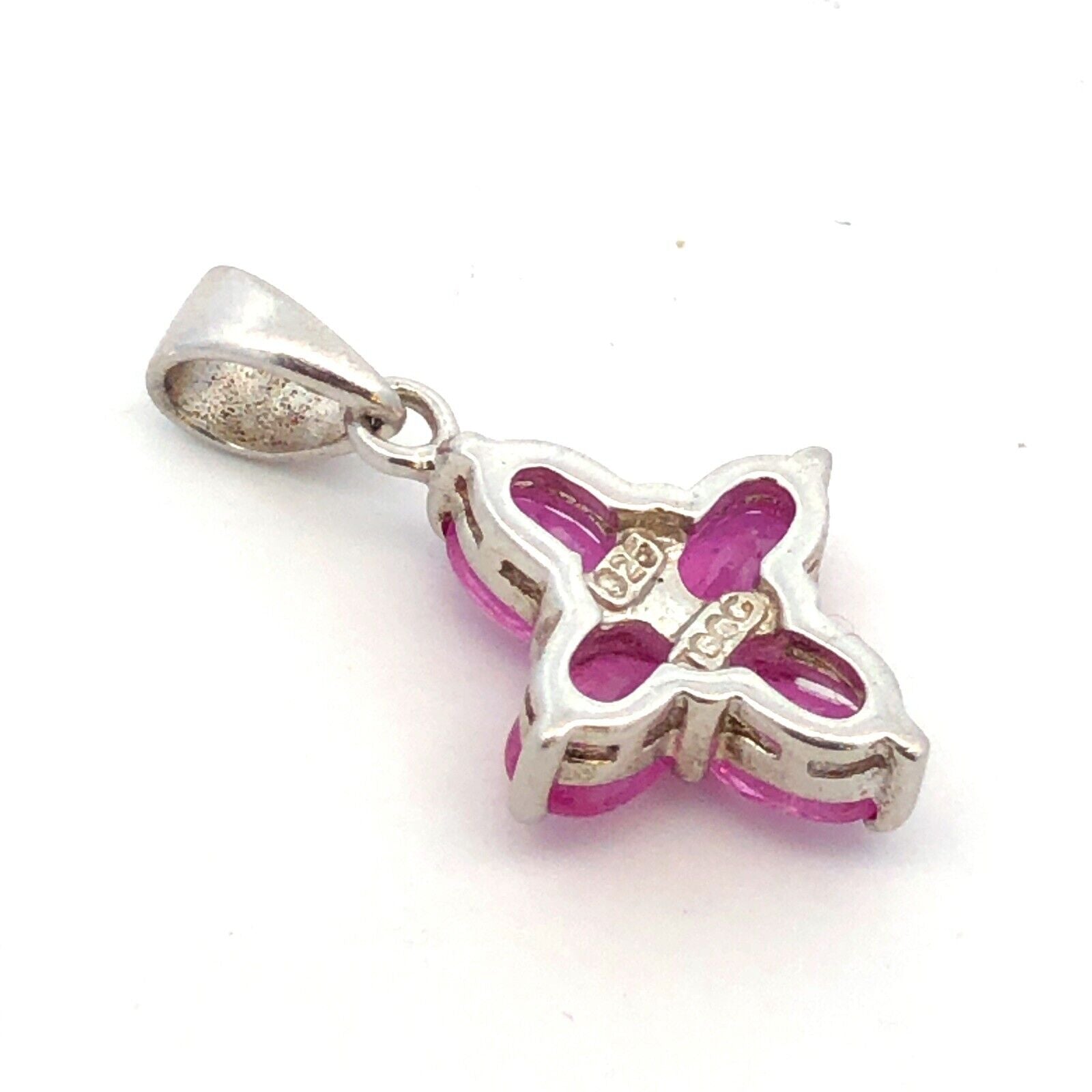 Designer TGGC 925 Sterling Silver Pink Oval Sapphire Cross Charm Pendant