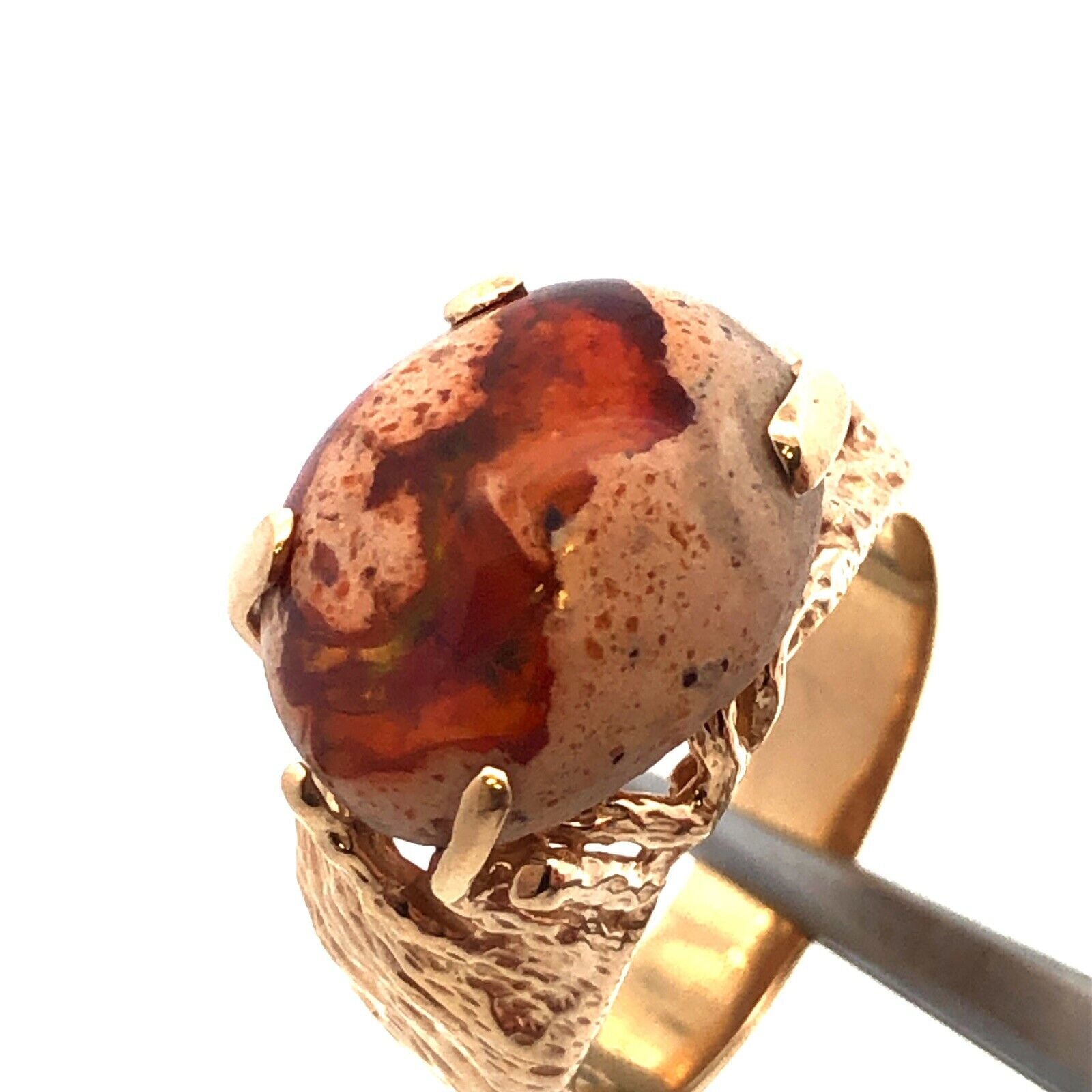 Designer Vintage 14K Yellow Gold Oval Mexican Opal Cabochon Statement Ring