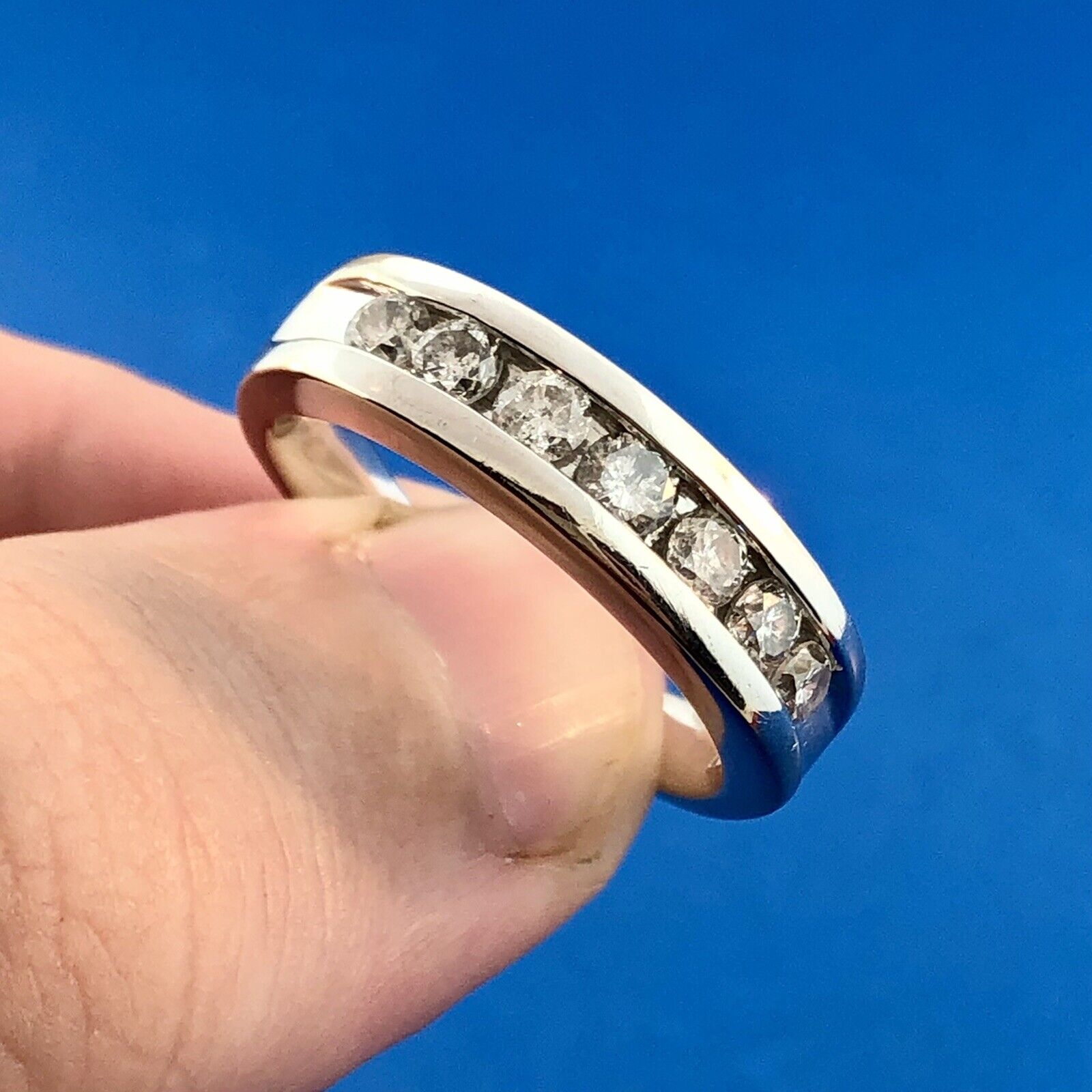 Designer Zales 10K White Gold Channel Set Diamond Wedding Band Ring Size 9.25