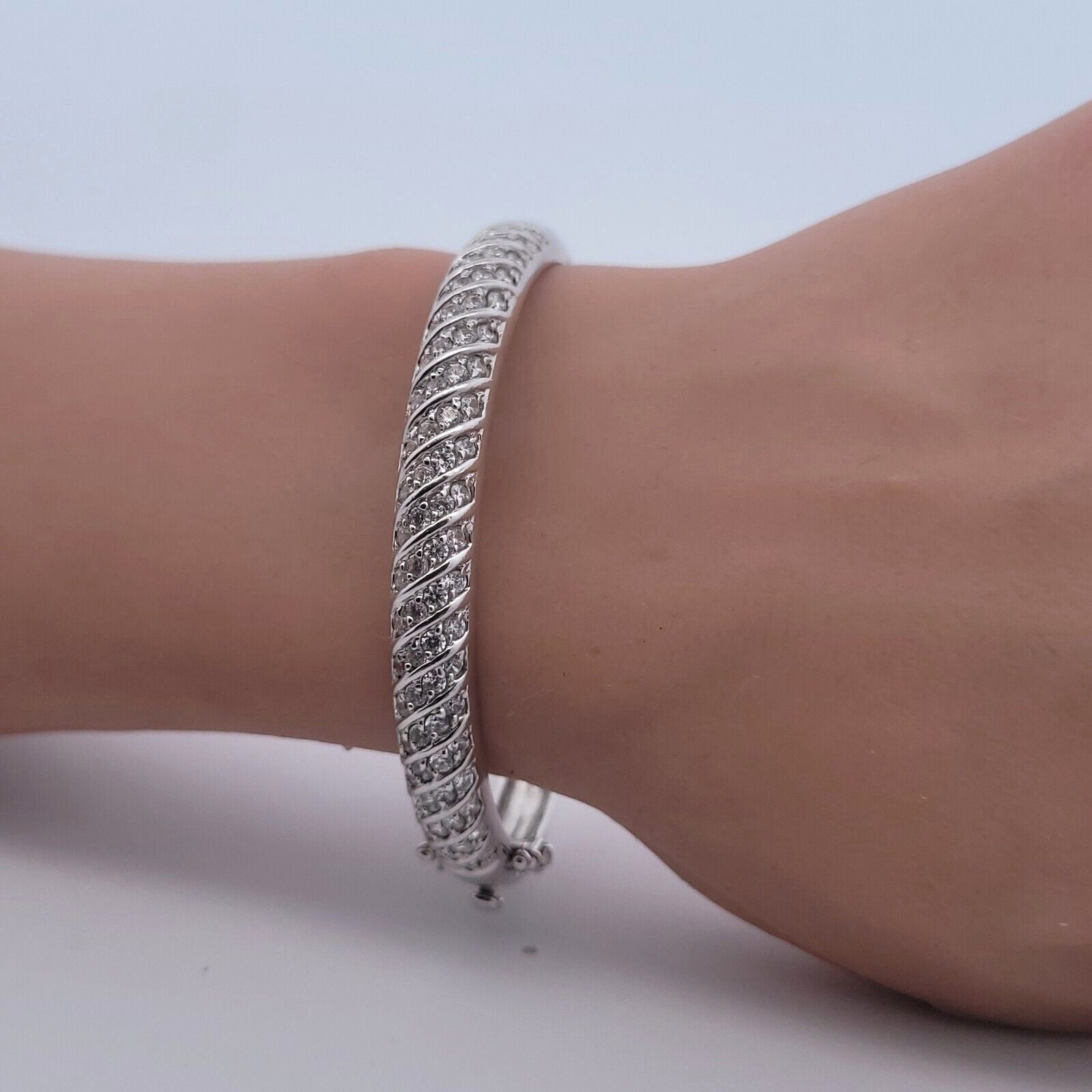 - Diamonique .925 Sterling Silver Cubic Zirconia Studded Hinge Bracelet