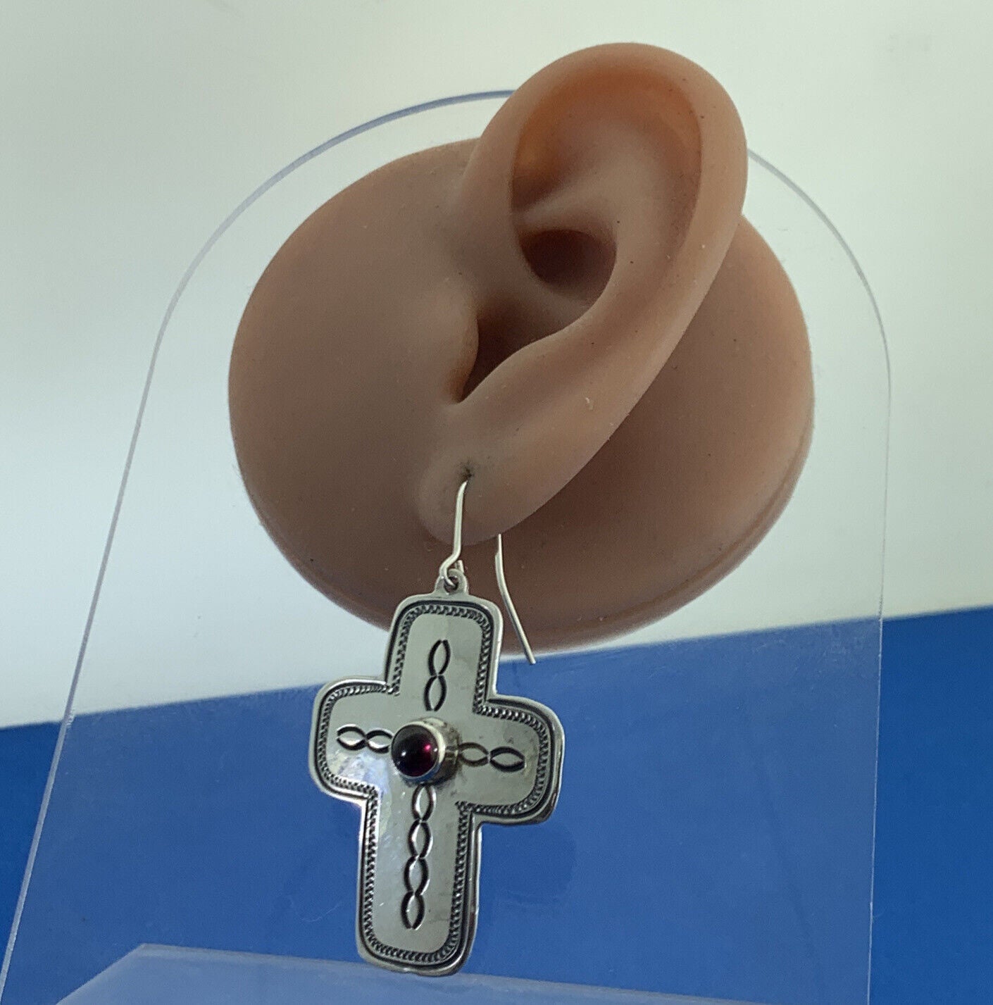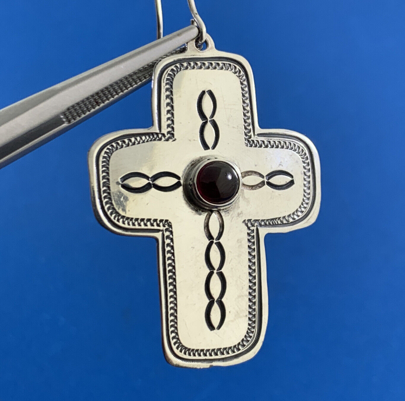- Don Lucas Native American 925 Sterling Silver Garnet Drop Dangle Concho Earrings