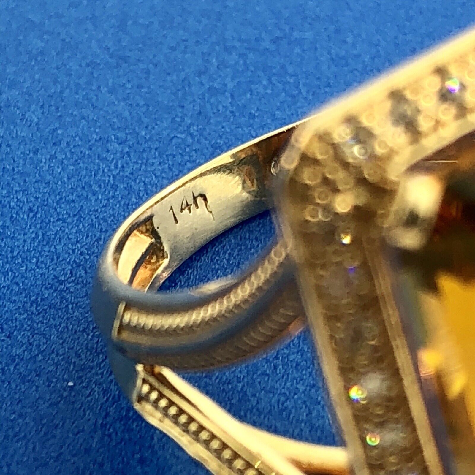 Dramatic 14K Yellow Gold Citrine Diamond Halo November Anniversary Dinner Ring