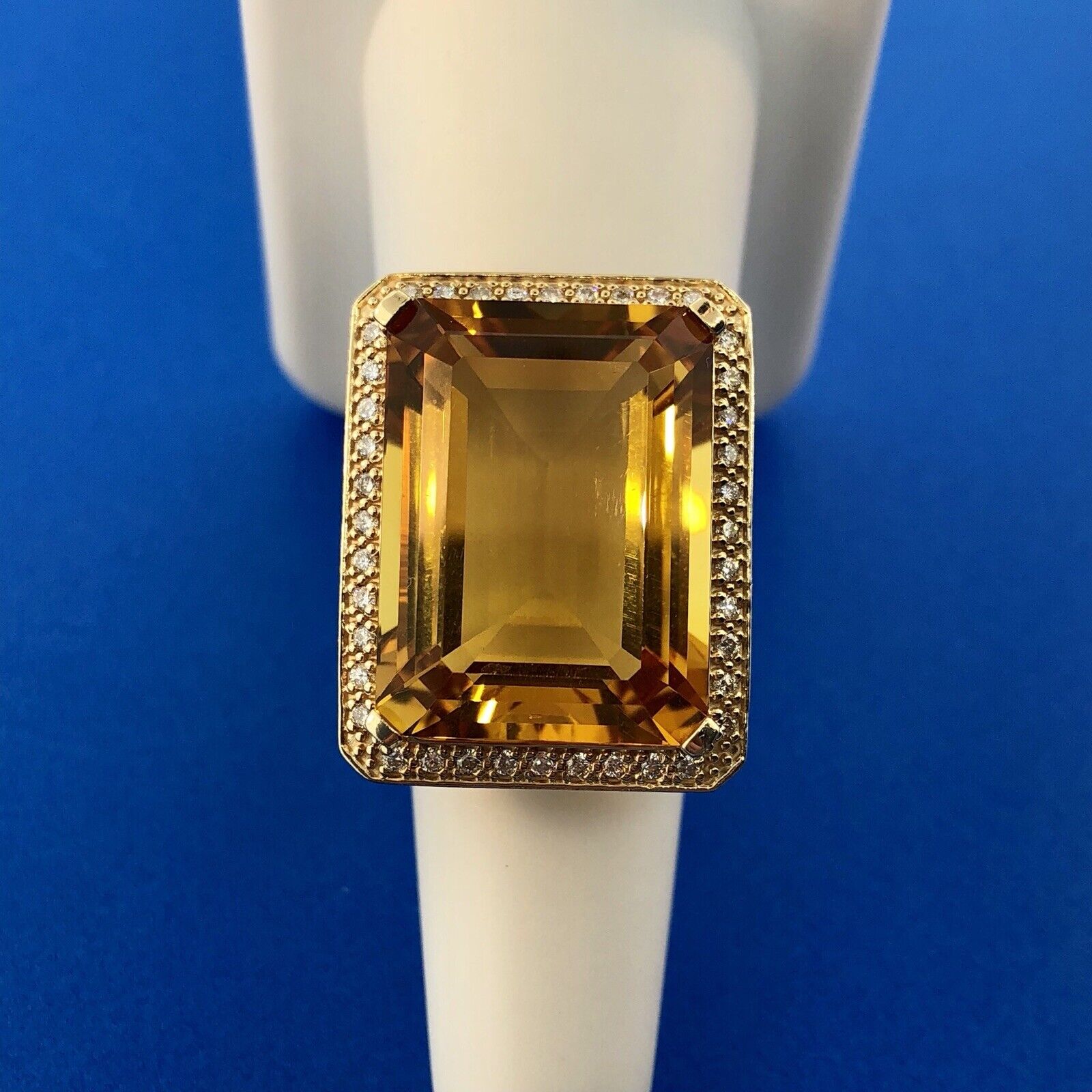 - Dramatic 14K Yellow Gold Citrine Diamond Halo November Anniversary Dinner Ring