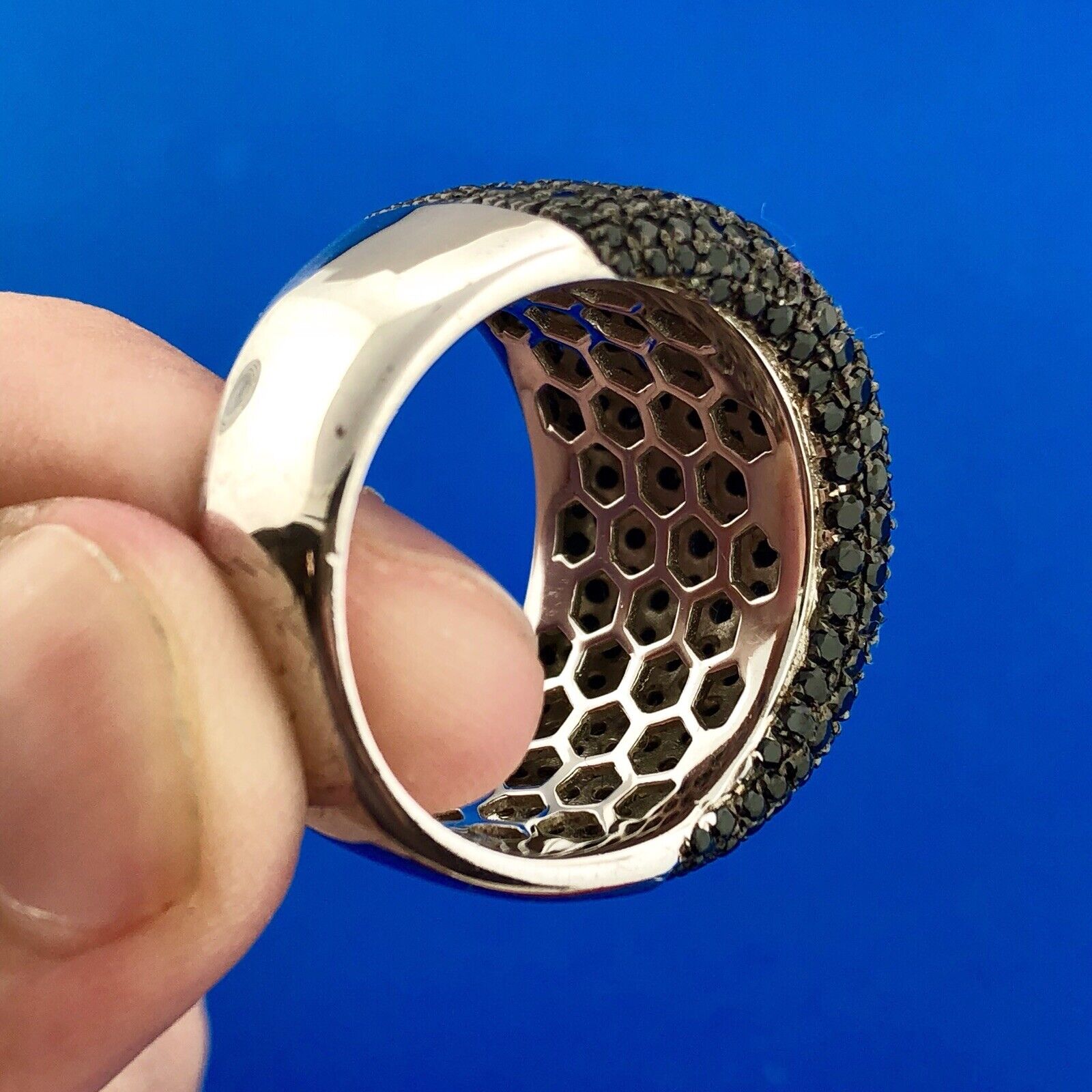 Dramatic Designer Sterling Silver 925 Black Diamond Pave Statement Dome Ring