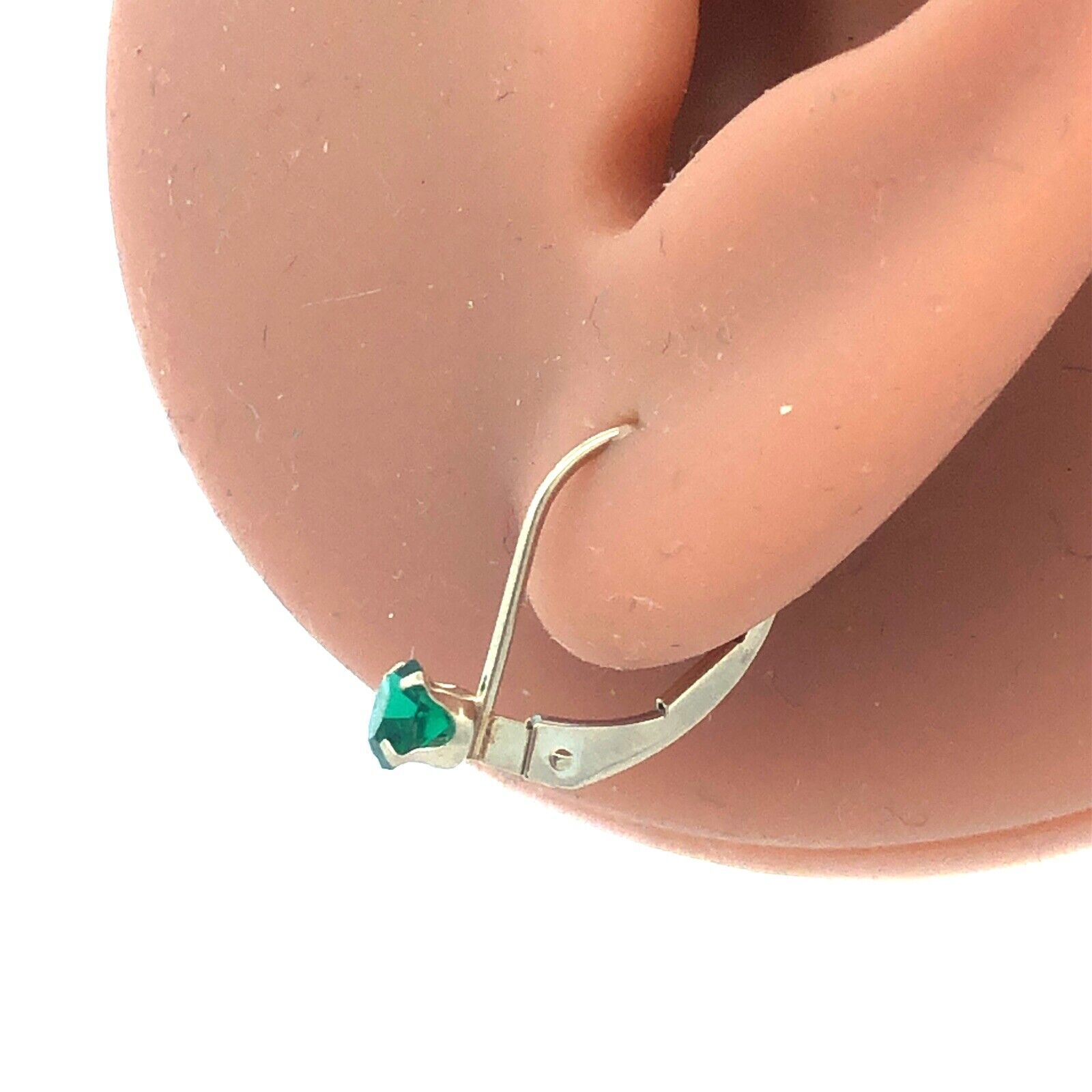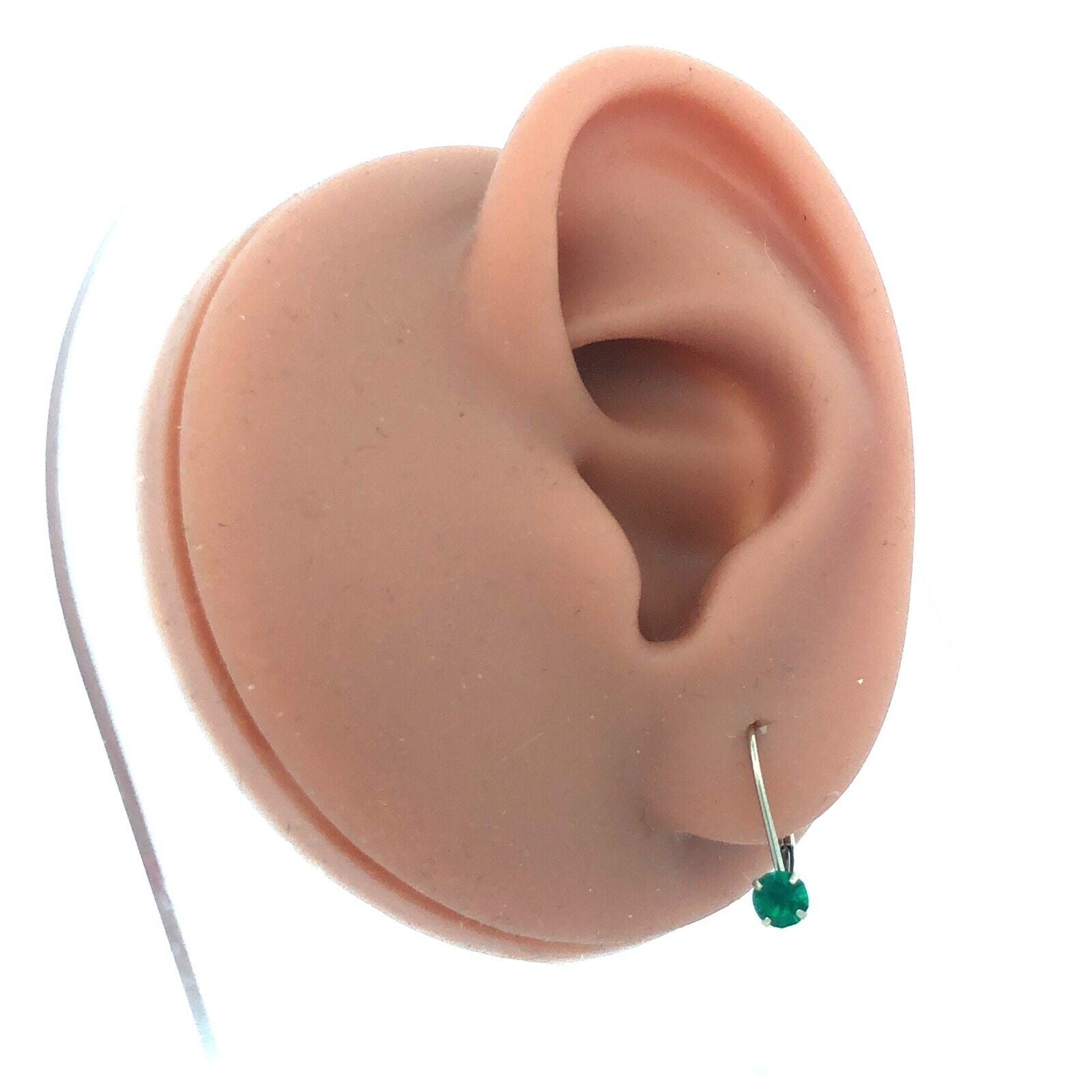 - Elegant 14K White Gold Emerald Green Cubic Zirconia Starter Leverback Earrings