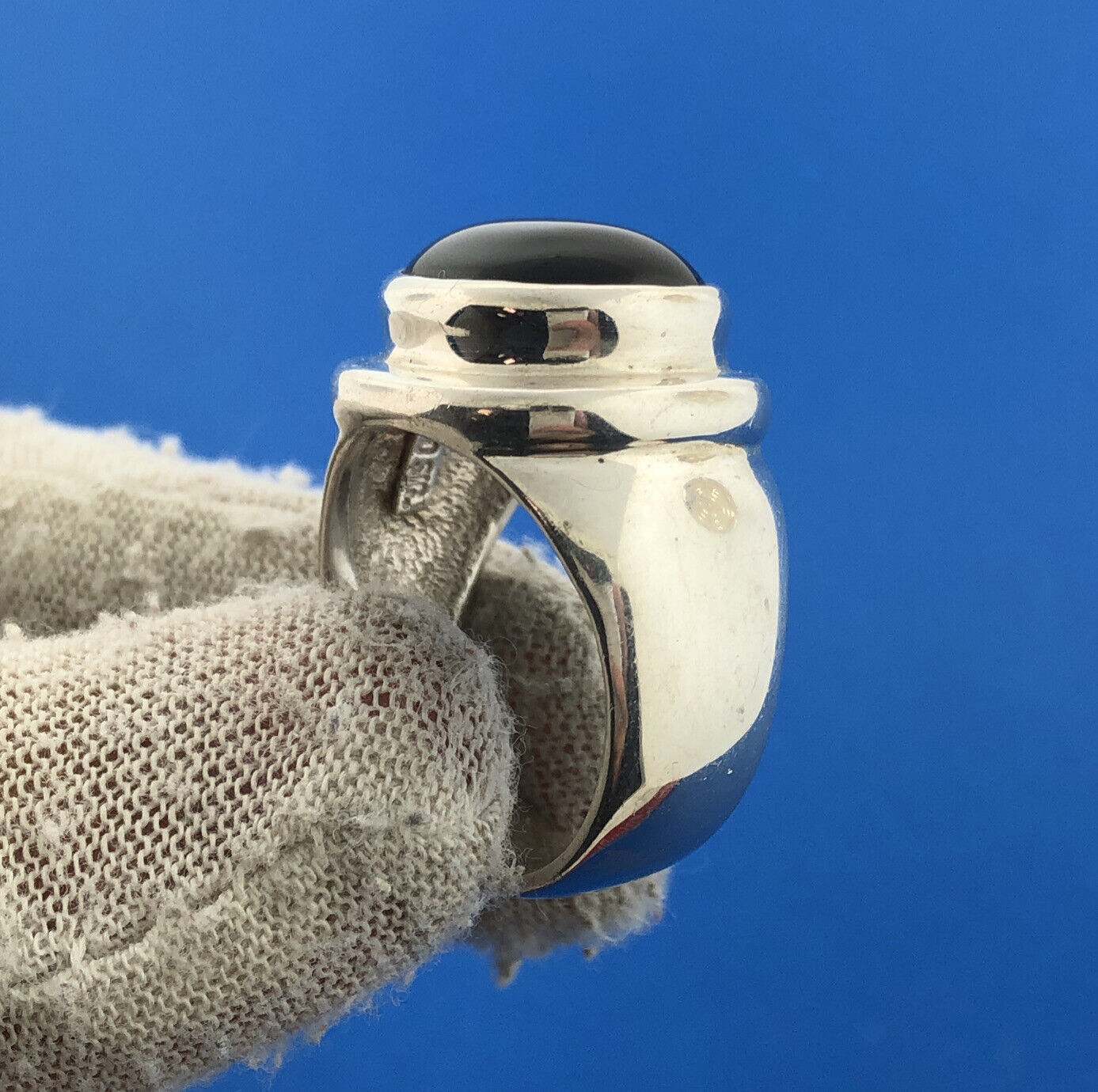ESPO 925 Sterling Silver Oval Black Onyx Cabochon Statement Unisex Dome Ring