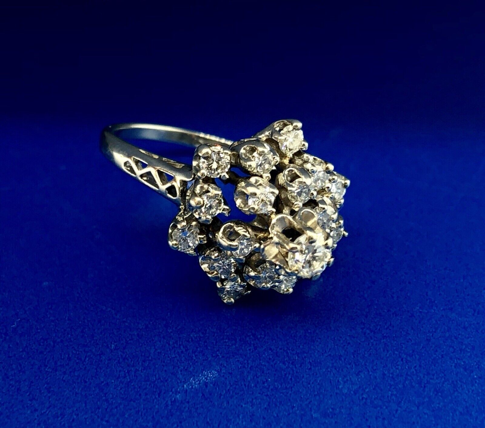- Estate 14K White Gold Diamond Star Cluster Princess Style Cocktail Ring