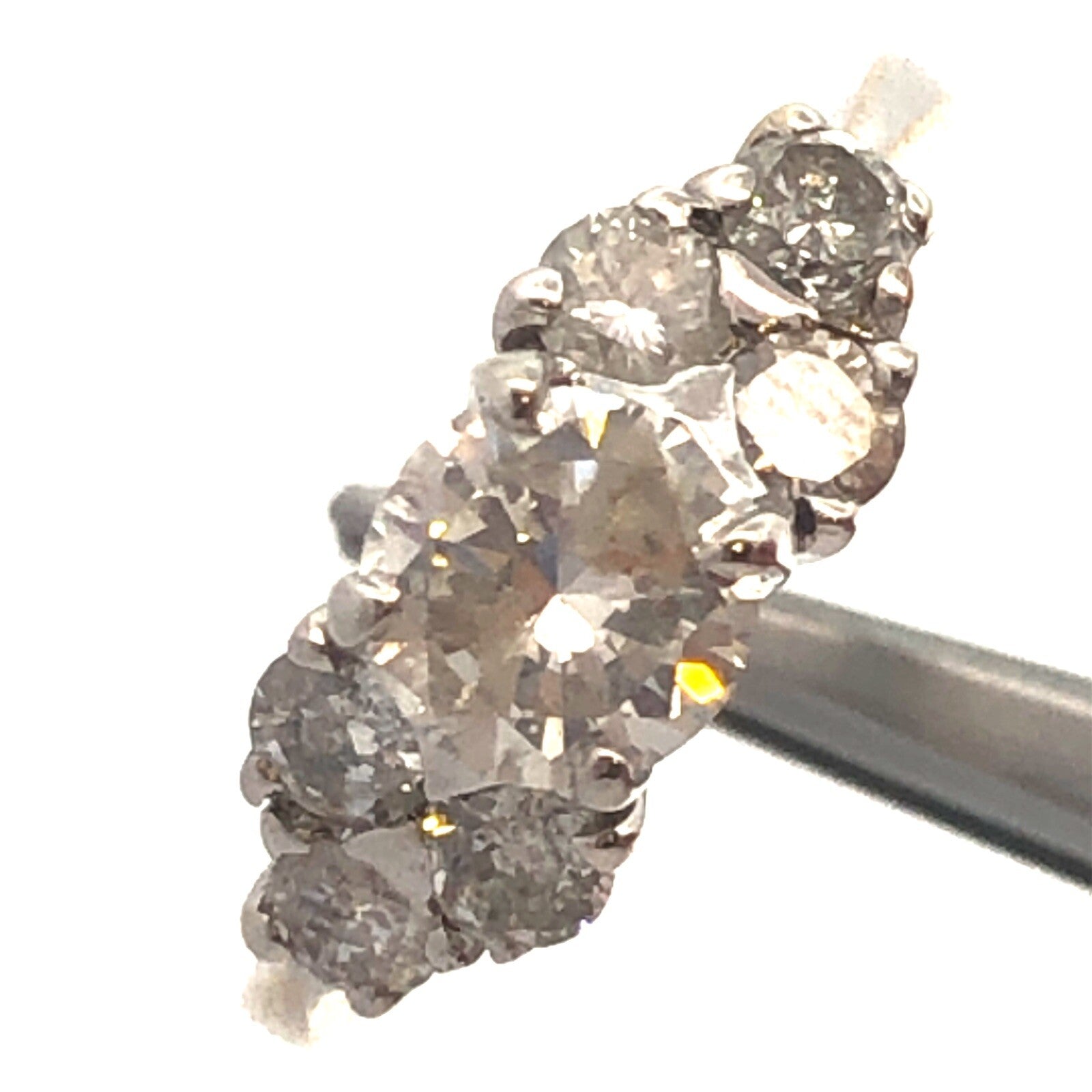Estate 14K White Gold Round Diamond Solitaire With Accents Engagement Ring